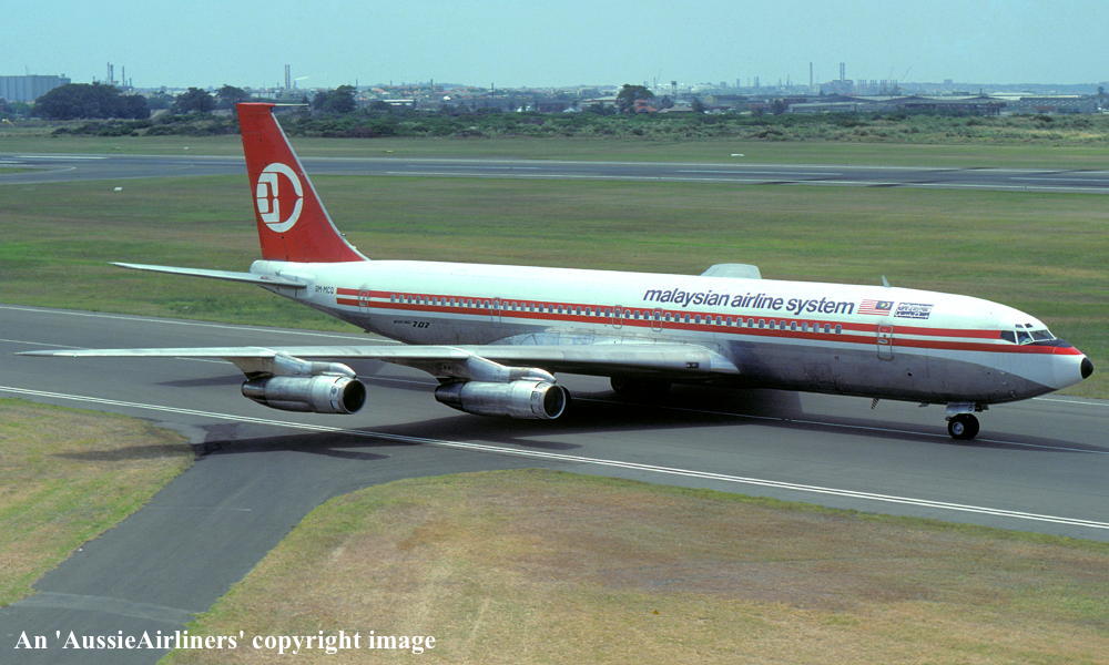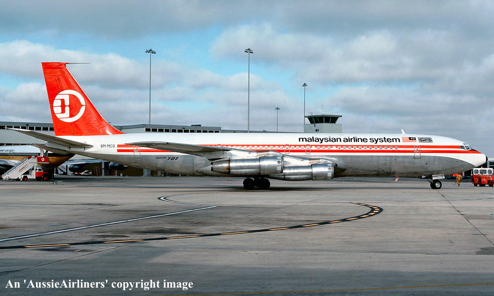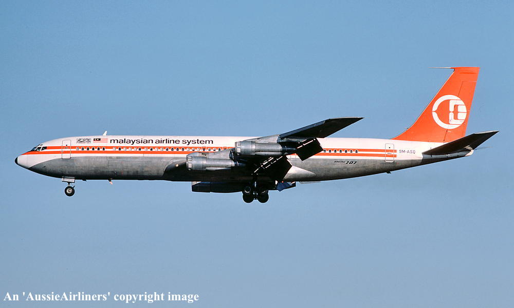 9M-ASQ. Malaysian Airline System - in the standard livery at Sydney Kingsford Smith Airport, June 1975. (R. N. Smith Copyright Image 4604-407.) |