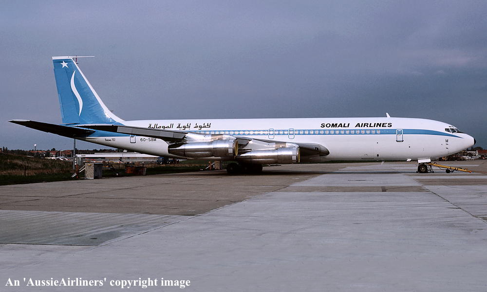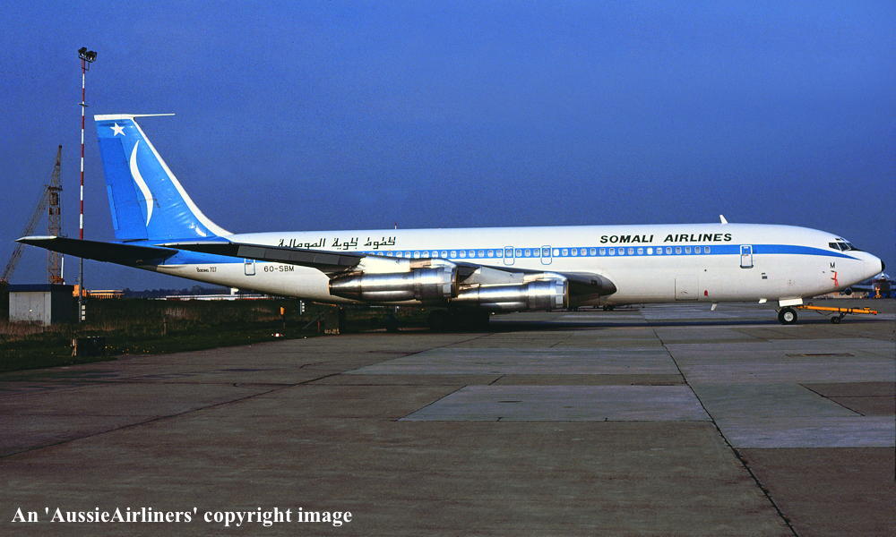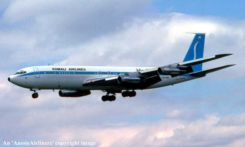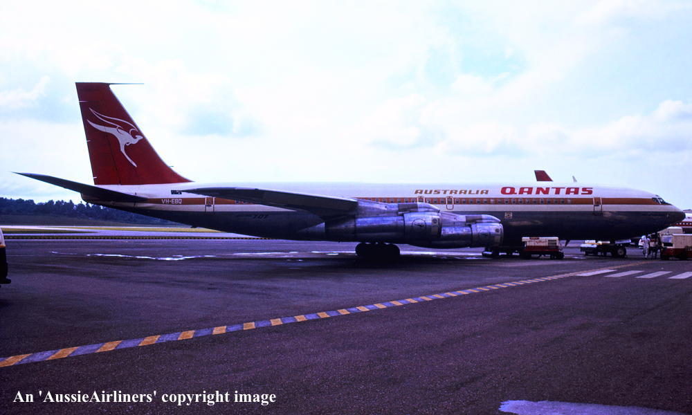 VH-EBQ. Boeing 707-338C. c/n 18953-443. Was also registered as: 9M-ASQ; 9M-MCQ; 6O-SBM; N342A. |