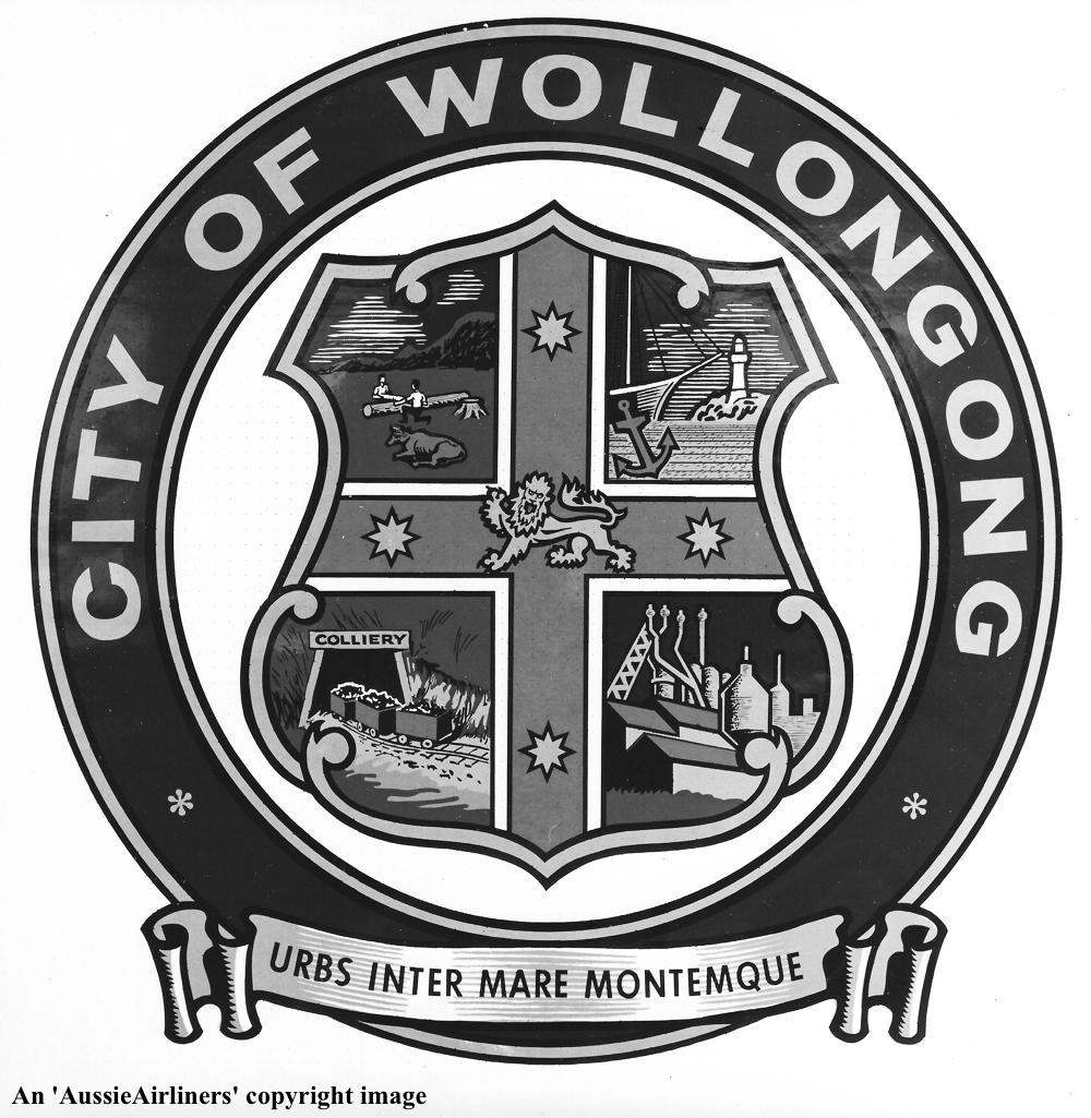 VH-EBR. Qantas Australia's Overseas Airline - 'City of Wollongong' Coat of Arms (Qantas Heritage Collection Copyright Image 1950-669.) |