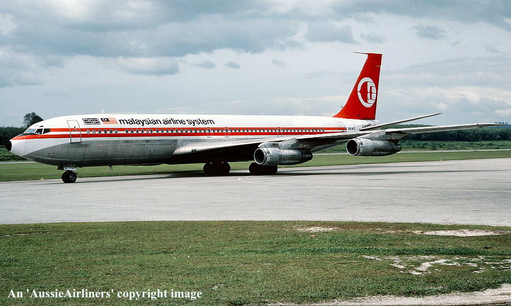 9M-MCR. Malaysian Airline System - in the original livery at Kuala Lumpur Airport, August 1976. (R. N. Smith Collection Copyright Image 4604-395.) |