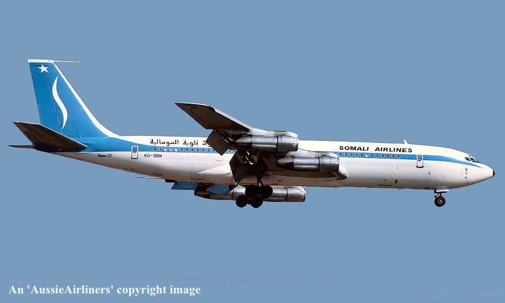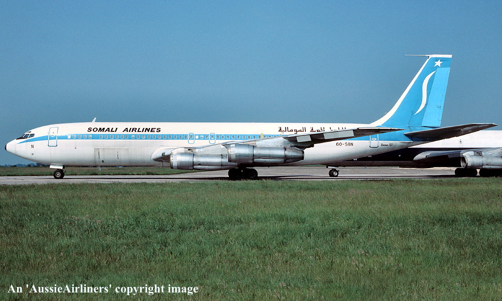 6O-SBN. Somali Airlines - in the standard livery at an unknown airport, date unknown. (R. N. Smith Collection Copyright Image 4604-431.) |