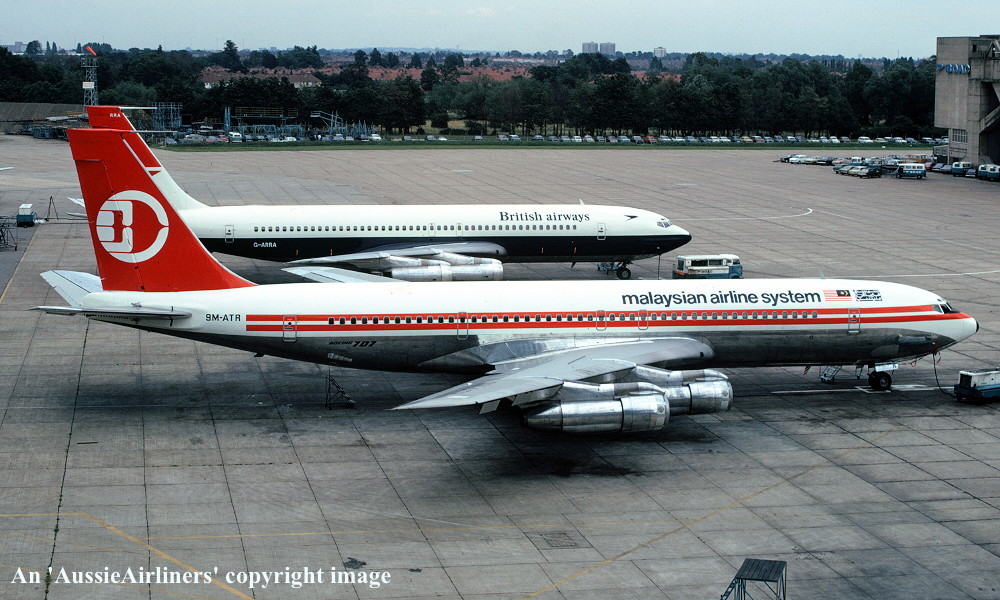 9M-ATR. Malaysian Airline System - in the original livery at London Gatwick Airport, August 1974. (R. N. Smith Collection Copyright Image 4604-438.) |