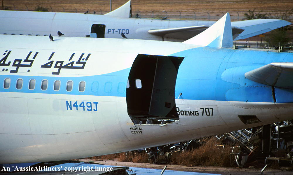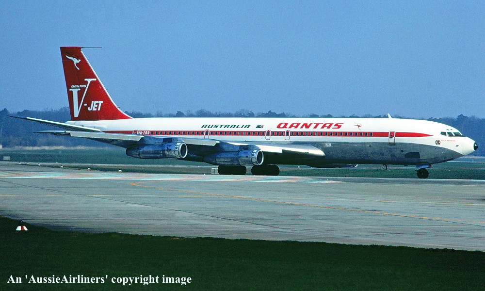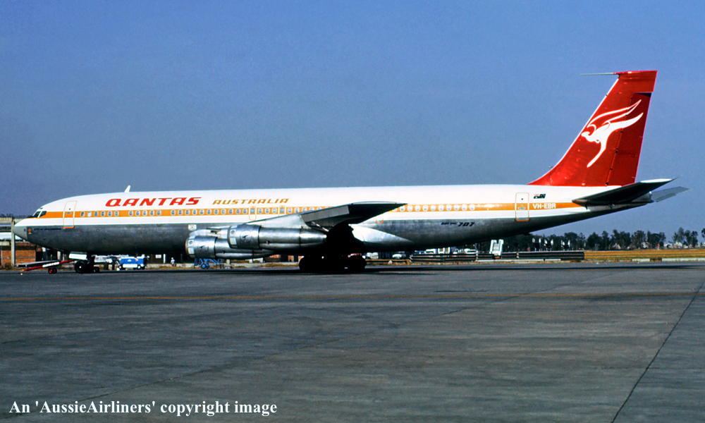 VH-EBR. Boeing 707-338C. c/n 18954-458. Was also registered as: 9M-ATR; 9M-MCR; 6O-SBN; N449J. |