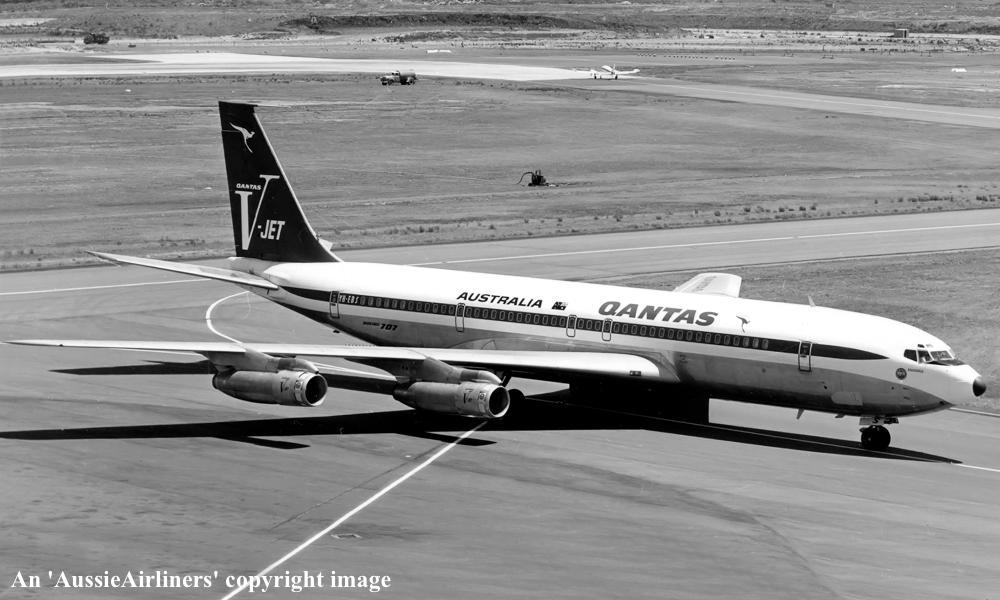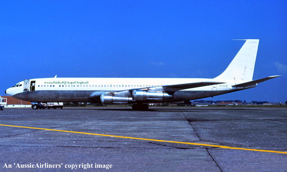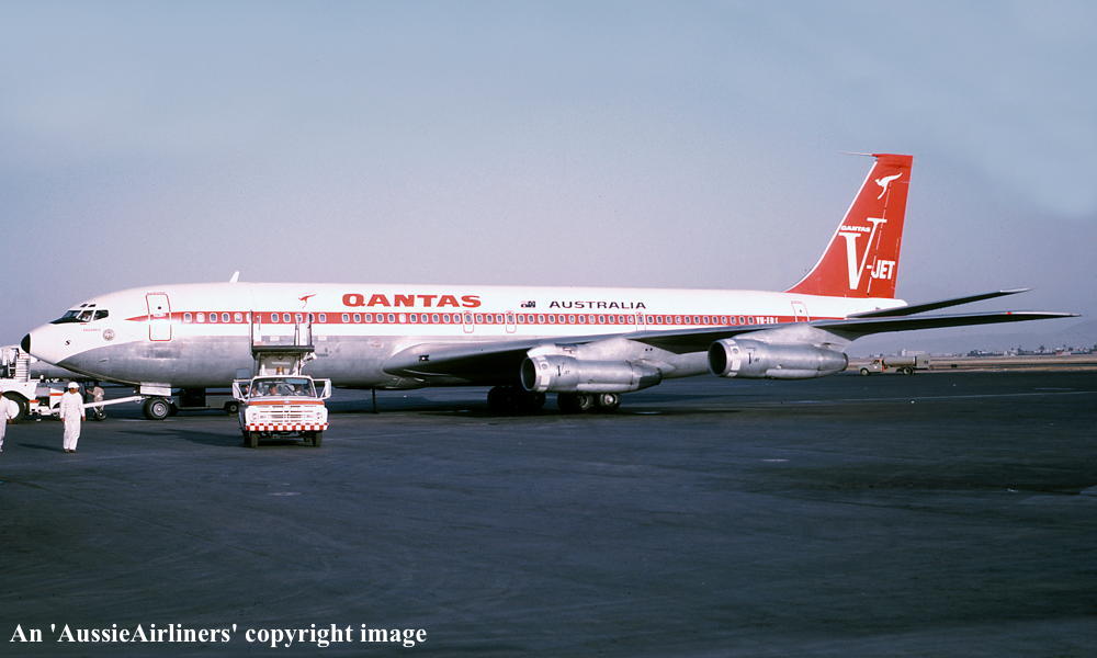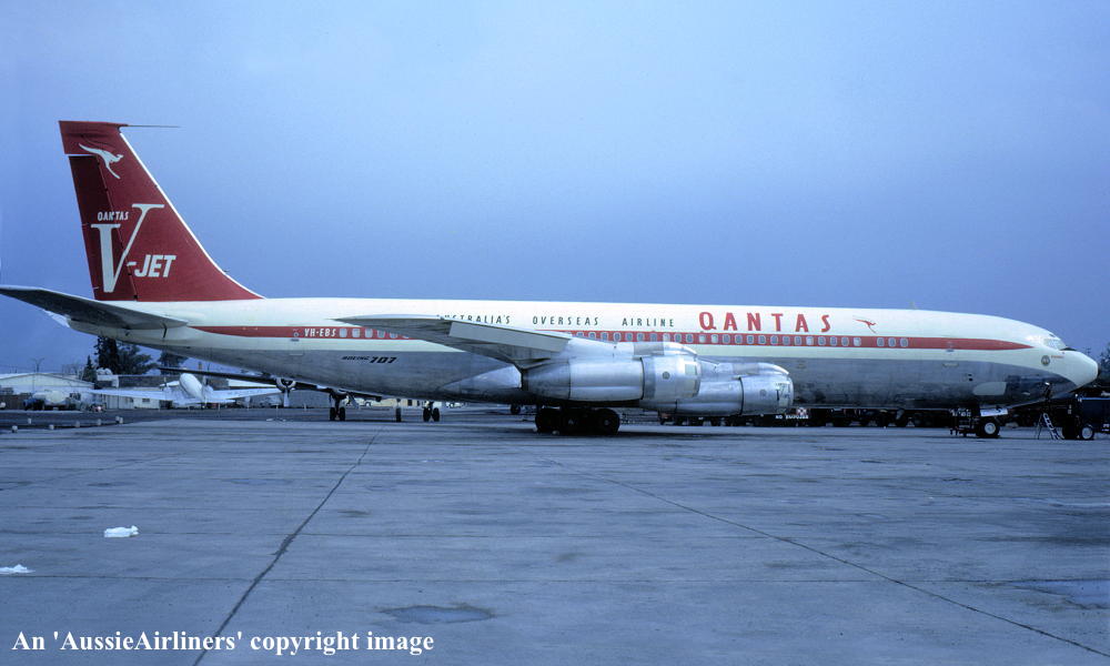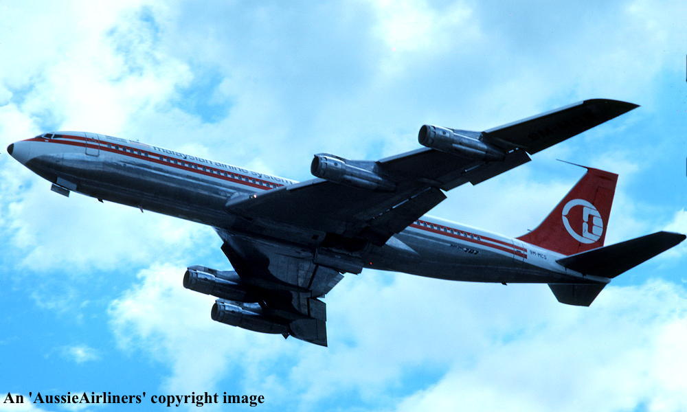 VH-EBS. Boeing 707-338C. c/n 18955-467. Was also registered as: 9M-ASO; 9M-MCS; 5A-DJO. |