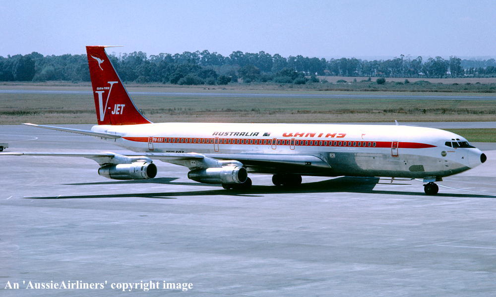 VH-EBS. Qantas Australia - 'Kalgoorlie' in the final 'V-Jet' livery at Sydney Kingsford Smith Airport, November 1972. (R. N. Smith Collection Copyright Image 4604-611.) |