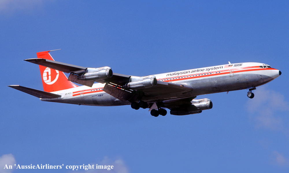 9M-MCS. Malaysian Airline System - in the original livery at Sydney Kingsford Smith Airport, October 1976. (R. N. Smith Copyright Image 4604-428.) |