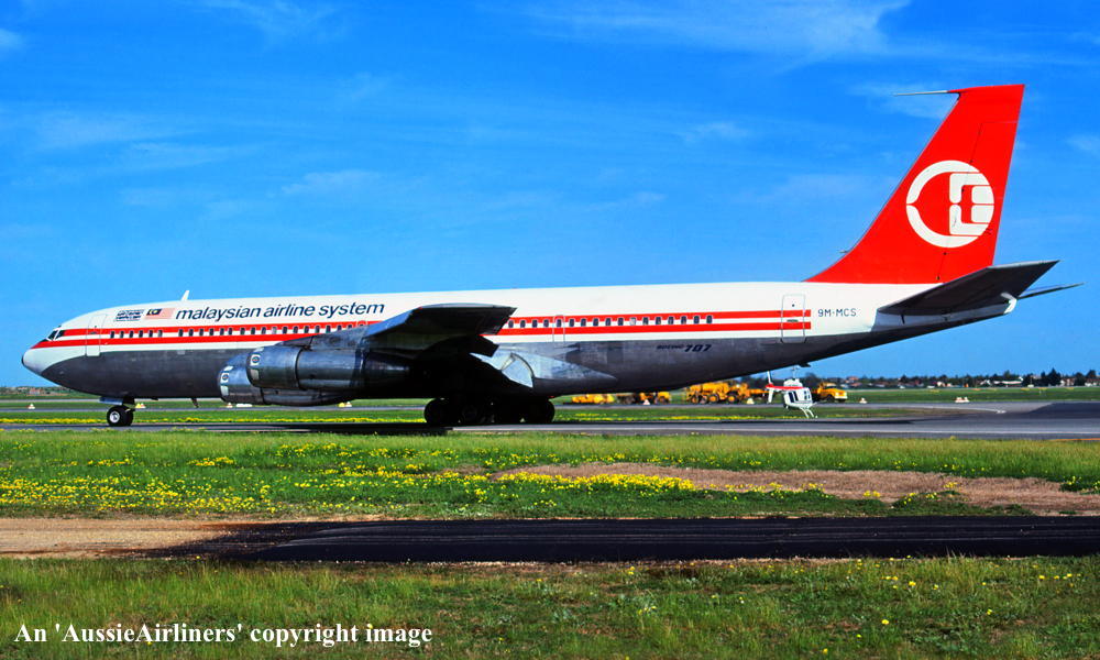 9M-MCS. Malaysian Airline System - in the original livery at Sydney Kingsford Smith Airport, September 1978. (R. N. Smith Copyright Image 4604-569.) |