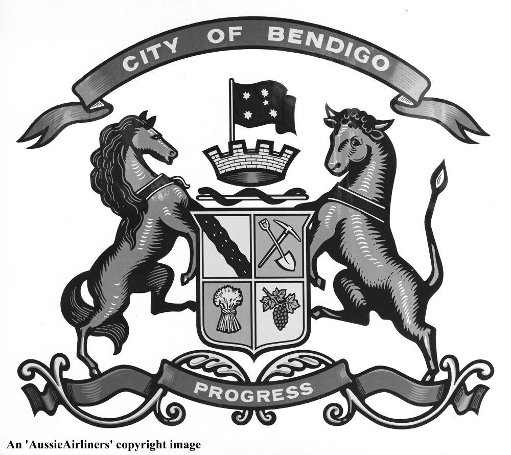 VH-EBT. Qantas Australia - 'City of Bendigo' Coat of Arms. (Qantas Heritage Collection Copyright Image 1950-173.) |