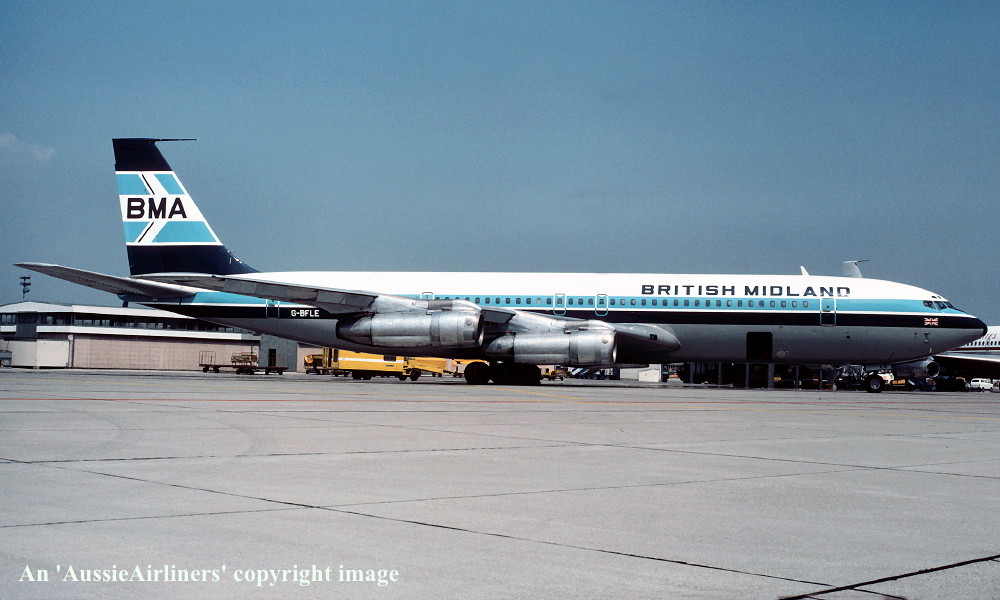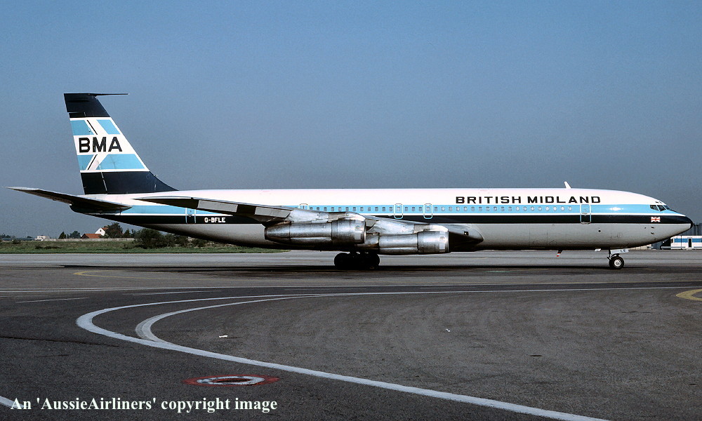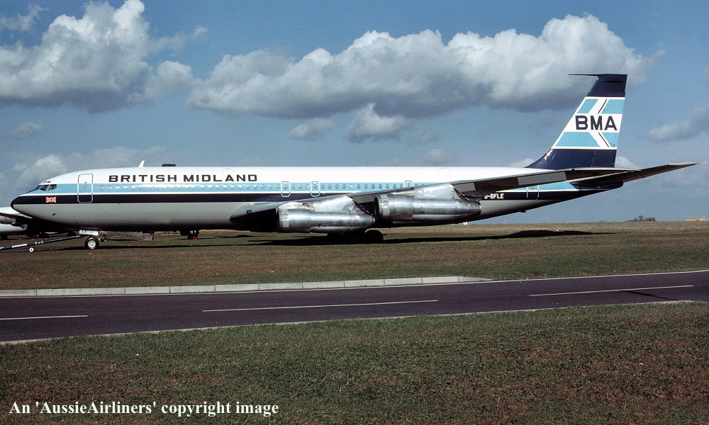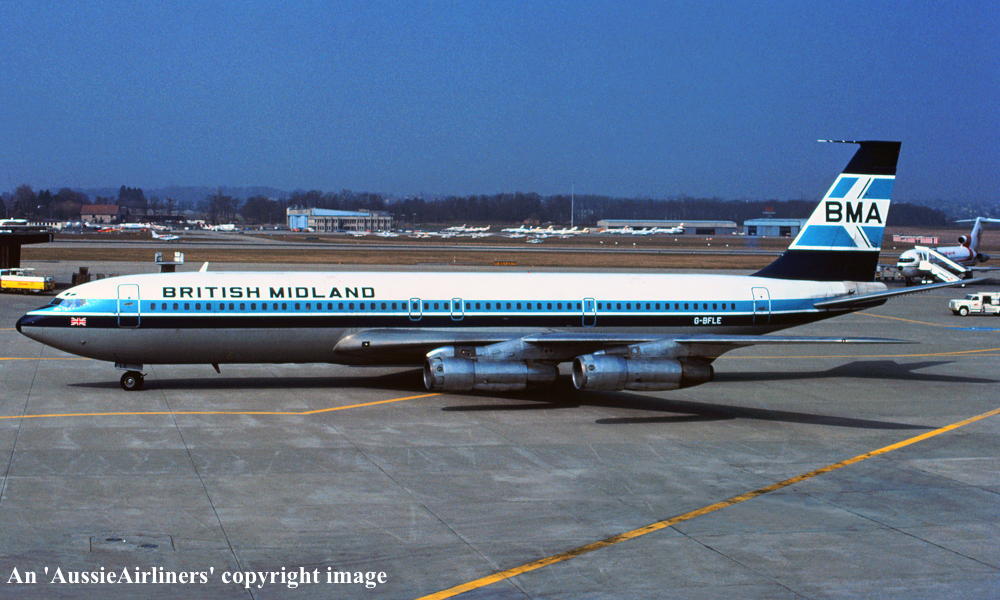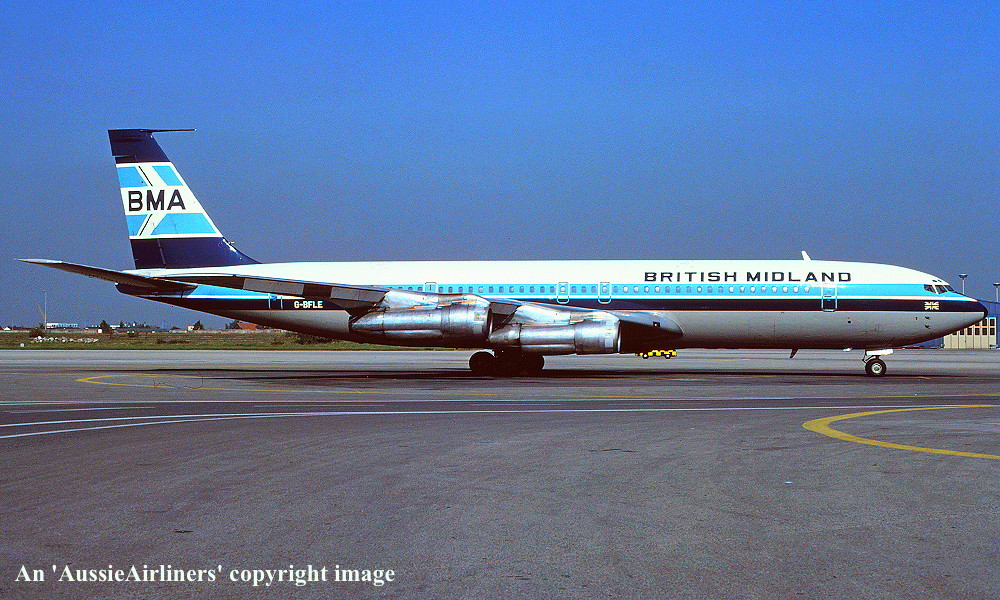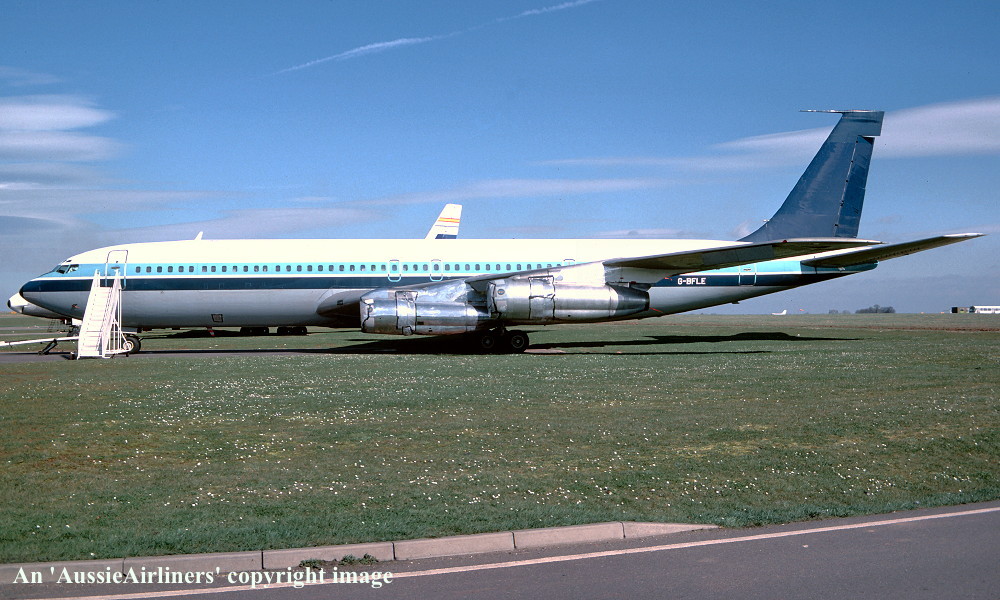 This aircraft was ordered new by Qantas Airways - ? Rolled off the Boeing production line at Seattle (Renton) - November 21, 1966 First flown at Seattle (Renton) as VH-EBT - December 29, 1966 Entered onto the Australian Aircraft Register as VH-EBT - January 27, 1967 Registered to Qantas Empire Airways Ltd, Sydney The aircraft was named 'City of Bendigo' Accepted by M. Mansill for Qantas Airways at Seattle - February 24, 1967 This was the 20th Boeing airliner delivered new to Qantas Airways It was the 20th Boeing 707 delivered to Qantas Departed Seattle (Boeing Field) on delivery flight to Australia (Captain A. Stapleton) - February 26, 1967 It arrived at Sydney (Kingsford Smith - 11:17 local) on completion of the delivery flight - February 28, 1967 Delivery route: Seattle - Honolulu - Nadi - Sydney Operated its first revenue service (freighter) Sydney (Kingsford Smith) - Noumea - March 17, 1967 Departed Sydney (08:28 local) on the first scheduled flight into Melbourne (Tullamarine) - July 01, 1970 It was the first scheduled departure from Melbourne (17:01 local) - San Francisco as QF530 - July 01, 1970 Flew Cyclone Tracey relief flight from Darwin carrying 246 passengers - December 29, 1974 Operated its final revenue service Sydney - Hong Kong - Sydney (Captain Street) as QF27/28 - April 14 - 15, 1978 Cancelled from the Australian Aircraft Register - April 17, 1978 The aircraft had flown 37,492 hours 14 minutes with 14,033 cycles including 3,652 touch & go Entered onto the British Aircraft Register as G-BFLE - April 18, 1978 Registered to ITEL Corporation Leased to British Midland Airways Ltd as the registered operator Accepted by ITEL at Sydney (Kingsford Smith) - May 17, 1978 Departed Sydney (Kingsford Smith) in the Kuwait Airways livery and carrying a 5th engine - May 17, 1978 Sub-leased to Kuwait Airways as the registered operator - May 19, 1978 Returned to British Midland on termination of the lease - July 14, 1978 Sub-leased to Pakistan International Airlines as the registered operator - July 15, 1978 It was observed at Amsterdam in the Pakistan International Airlines livery in a freighter configuration - July 15, 1978 Returned to British Midland at the end of the lease - April 01, 1979 Sub-leased to Air Algerie in basic PIA livery with 'Air Algerie' titles as the registered operator - April 19, 1979 Returned to British Midland on termination of the lease - May 1979 Sold to British Midland - September 1979 Leased to Gulf Air and ferried East Midland - Heathrow in the 'Gulf Air' livery - October 31, 1979 Entered Gulf Air service operating four freighter services per week Heathrow - Bahrain - November 01, 1979 Returned to British Midland at the end of the lease - March 30, 1980 Leased to DETA Mozambique Airlines as the registered operator - April 14, 1980 Ferried East Midlands - Rome - Maputo on delivery to 'DETA' - April 18, 1980 It arrived at Hamburg with DETA tail logo and Linhas Aereas Mocambique fuselage titles - September 28, 1980 Ferried Hamburg - East Midlands after maintenance - October 08, 1980 Leased to Linhas Aereas Mocambique - October 1980 Operated the inaugural LAM flight into Paris (Charles de Gualle) - November 03, 1980 Returned to British Midland at the end of the lease - March 30, 1981 Rolled out at East Midlands with 'Ariana Afghan' titles - April 14, 1981 Leased to Ariana Afghan Airlines as the registered operator - April 15, 1981 Returned to British Midland at the end of the lease - May 26, 1981 Leased to the Canadian Canning Company - May 26, 1981 Returned to British Midland at the end of the lease - July 26, 1981 Leased to Somali Airlines as the registered operator - July 26, 1981 Entered service in the basic 'LAM livery' with Somali Airlines titles Returned to British Midland at the end of lthe ease - September 26, 1981 Departed East Midlands for Tel Aviv for overhaul and reconfiguration to 211 passengers - November 28, 1981 Ferried Tel Aviv - London (Heathrow) - East Midlands in the 'British Midland' livery - February 03, 1982 Leased to El Al as the registered operator - March 27, 1982 Returned to British Midland at the end of the lease - May 1982 Leased to Saudi Arabian Airlines for hadj flights - September 1982 Returned to British Midland at the end of the lease - November 1982 Leased to El Al to cover for a pilot's strike - November 1982 Returned to British Midland at the end of the lease - December 1982 Operated its final B.M.A. revenue service Tenerife - Manchester - November 30, 1984 Withdrawn from service and stored at East Midlands - November 30, 1984 The aircraft had flown 50,683 hours with 18,601 cycles Sold by Chemco Leasing to ATASCO and then Radix Air Corp - August 1985 Ferried East Midlands - Tel Aviv for hush-kitting - August 21, 1985 Cancelled from the British Aircraft Register - August 21, 1985 Entered onto the United States Aircraft Register as N861BX - August 21, 1985 Registered to Chemco Leasing Corp Sold by Chemco Leasing to ATASCO Isreal - August 21, 1985 Sold to Radix Corporation - August 21, 1985 Sold to ATASCO Leasing - November 22, 1985 Ferried Tel Aviv - Bangor (U.S.A.) for delivery to Burlington Air Express - December 06, 1985 Leased to Burlington Air Express - January 1986 Sub-leased to Southern Air Transport as the registered operator - January 1986 Sold to Meridan Trust Company, Reading, PA - March 1986 Registered to Meridan Trust Company, Reading, PA - March 1986 Leased to Southern Air Transport as the registered operator Returned to Burlington Air Express at the end of the lease - January 08, 1992 Sub-leased to Buffalo Airways for one day - January 08, 1992 Withdrawn from service and offered for immediate sale - September 08, 1992 The aircraft had flown 58,080 hours with 24,427 cycles to date Sold to AeroUSA - June 04, 1993 Sold to Buffalo Airways - June 04, 1993 Sold to Starflite Corporation - June 02, 1994 Sold to Grumman Aerospace Corp, Florida for Joint-STARS conversion - June 02, 1994 Certification of Registration issued