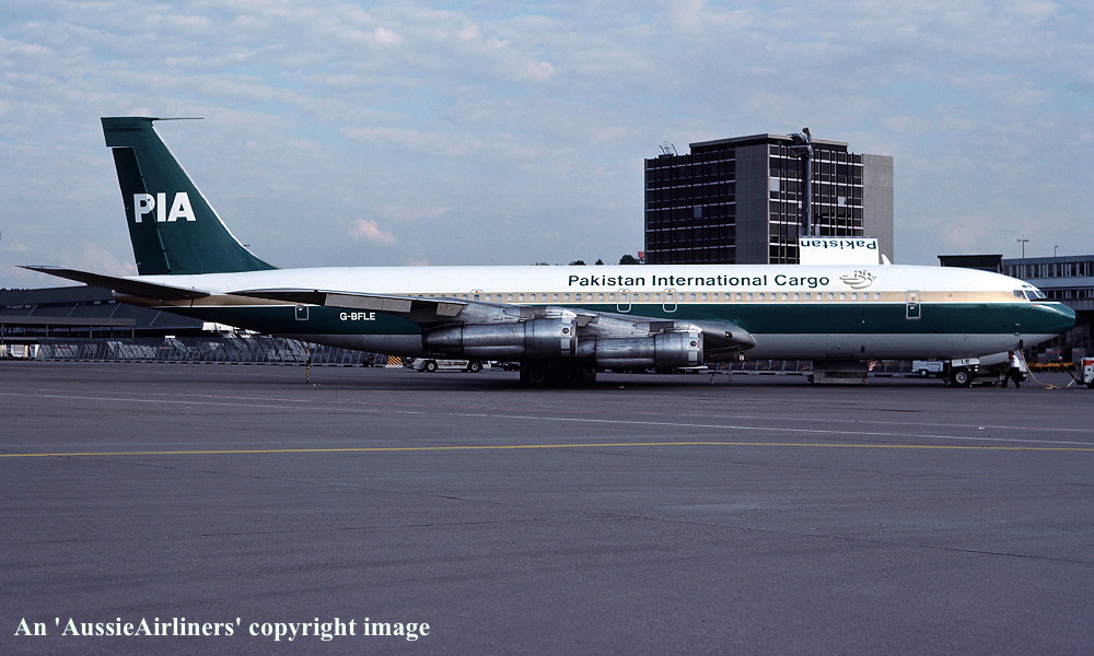 G-BFLE. Pakistan International Cargo - in the standard livery at Manchester Airport, August 1978. (G. Ditchfield Copyright Image 4604-418.) |