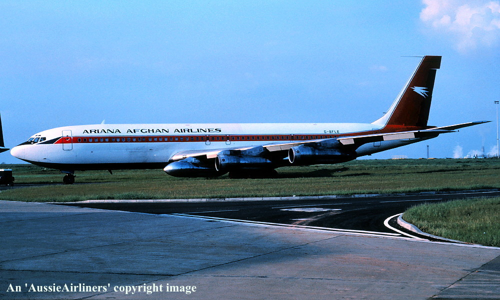 G-BFLE. Ariana Afghan Airlines - in the basic LAM livery at East Midlands Airport, June 1981. (R. N. Smith Collection Copyright Image 4604-464.) |