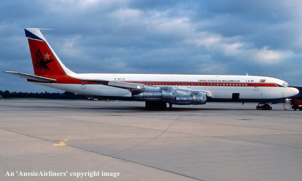 G-BFLE. LAM Linhas Aereas de Mocambique - in the standard livery at an unknown airport, October 1980. (R. N. Smith Collection Copyright Image 4604-469.) |