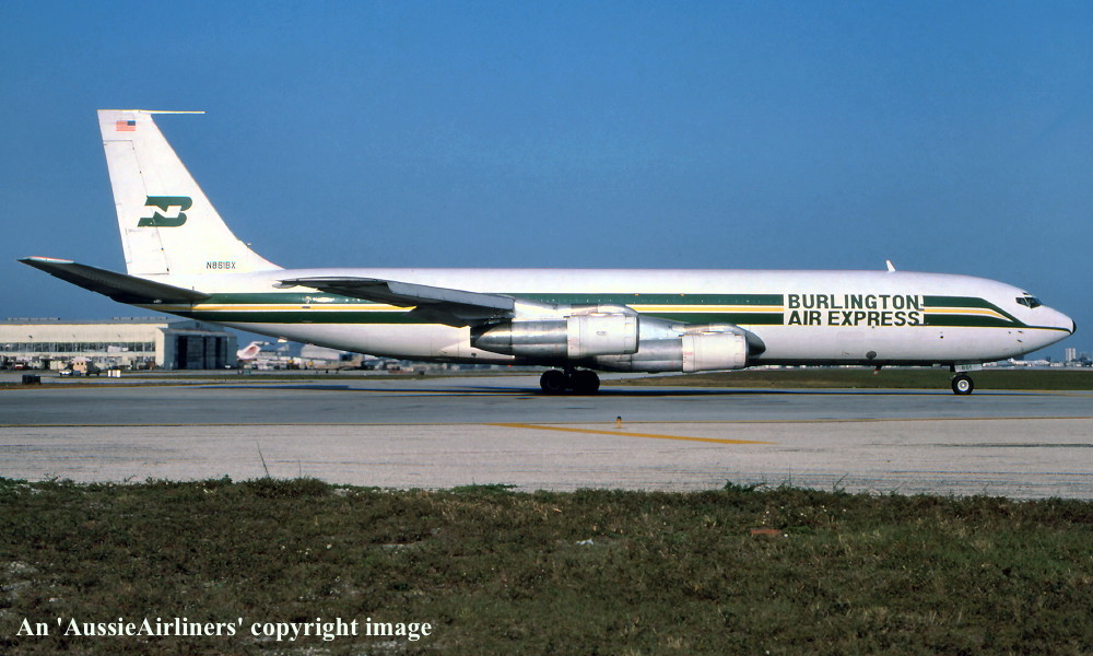 N861BX. Burlington Air Express - in the standard livery at Miami Airport, April 1987. (R. N. Smith Collection Copyright Image 4604-474.) |
