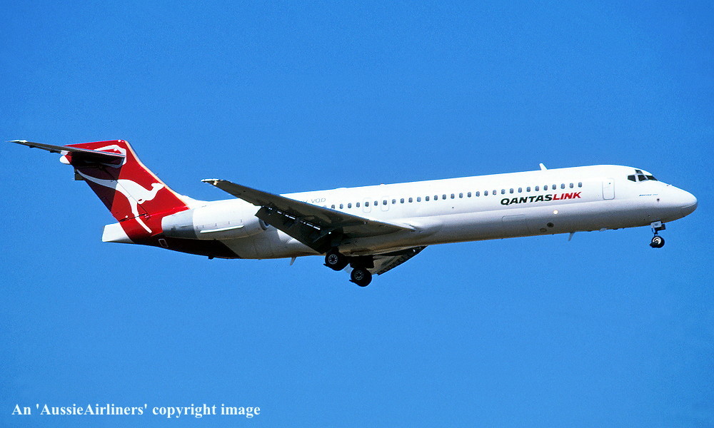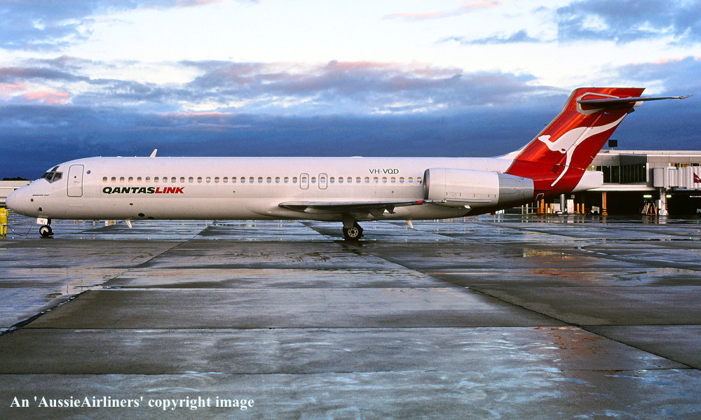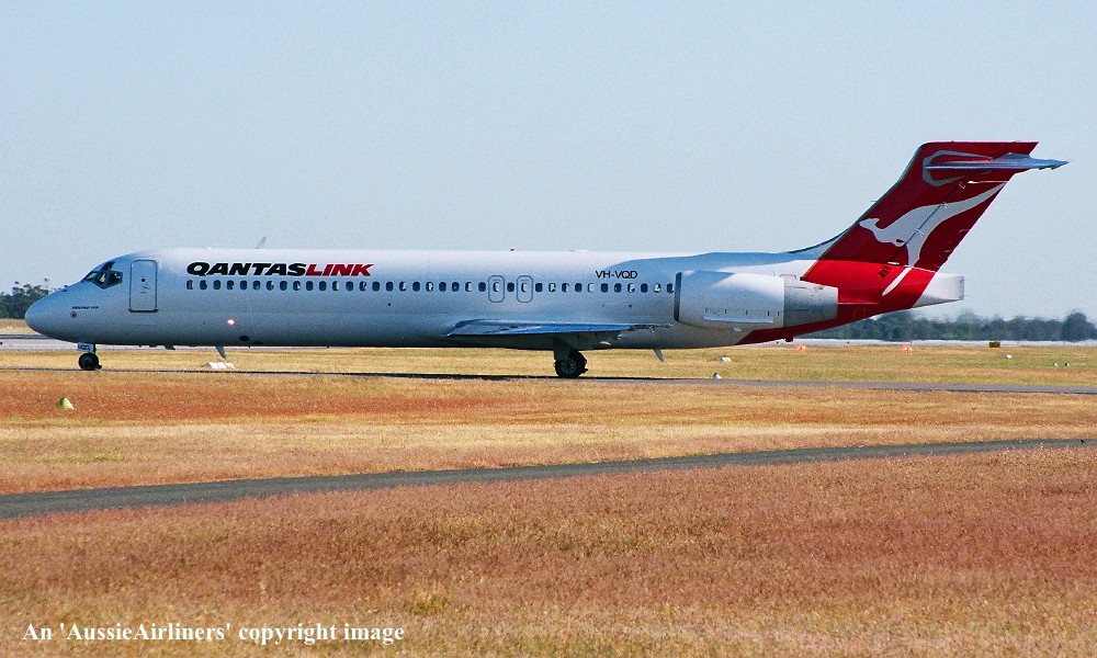 VH-VQD. QantasLink - in the original livery at Melbourne Tullamarine Airport, November 2001. (G. Bennett Copyright Image 4660-152.) |
