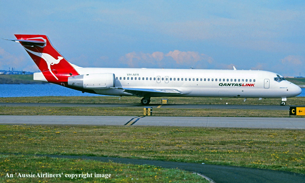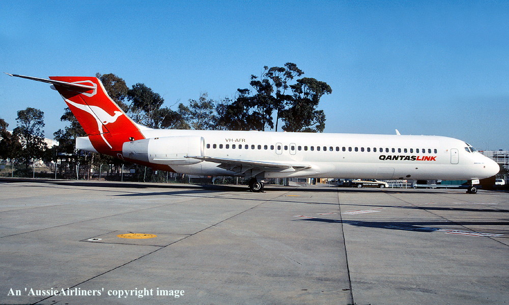VH-AFR. QantasLink - in the original livery at Sydney Kingsford Smith Airport, July 2001. (R. N. Smith Collection Copyright Image 4660-132.) |