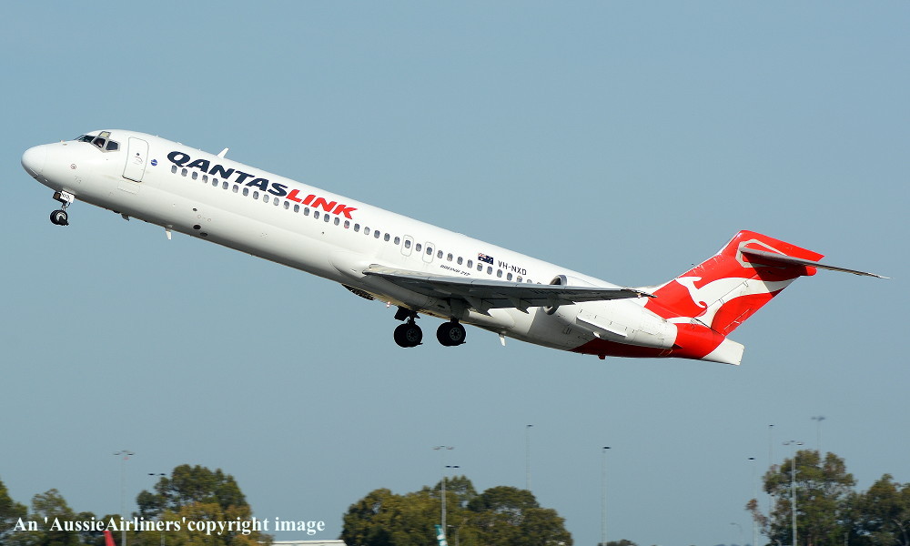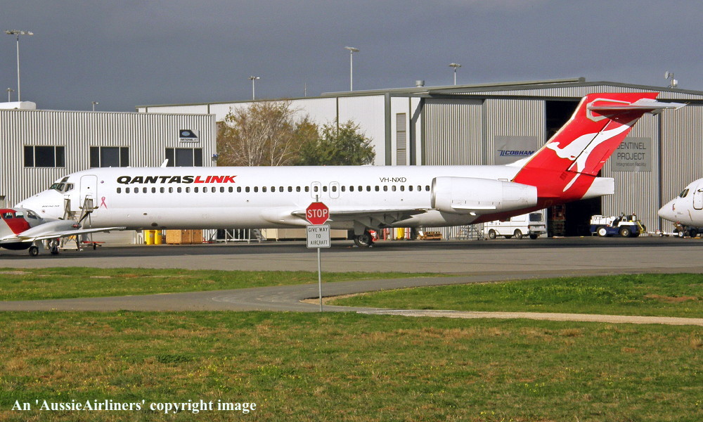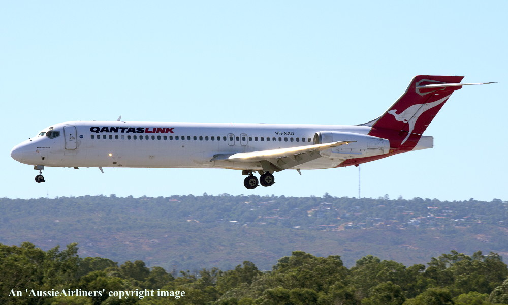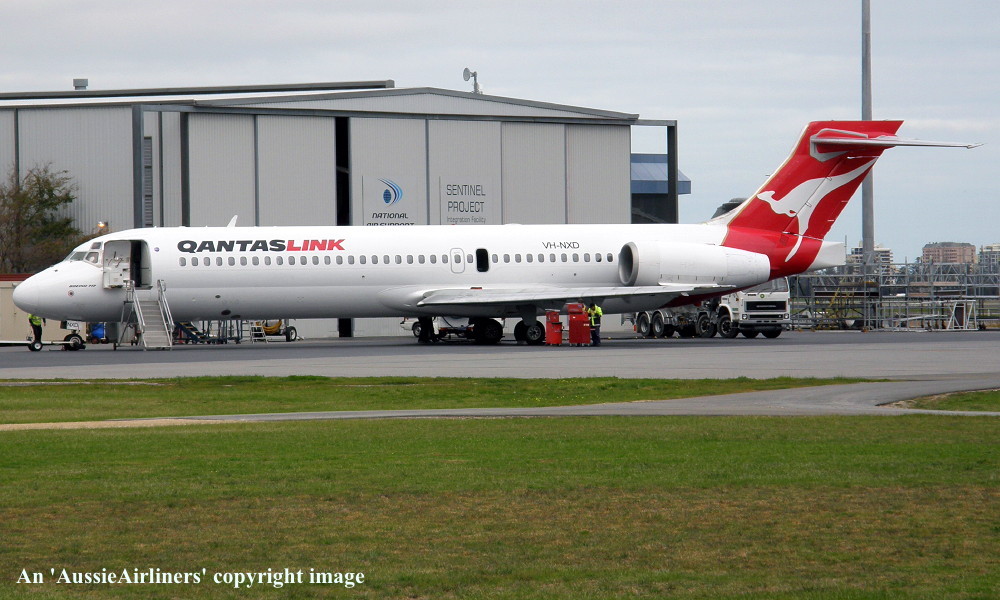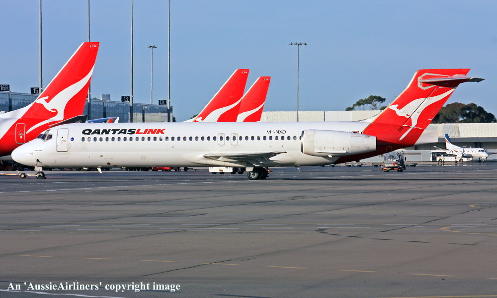 VH-NXD. QantasLink - in the standard livery at Perth Airport, February 19, 2014. (R. N. Smith Collection Copyright Image 4660-471.) |