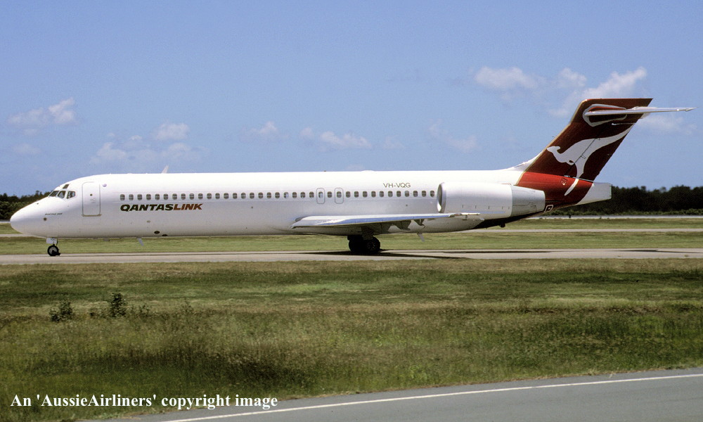 VH-VQG. QantasLink - in the original livery at Melbourne Tullamarine Airport, February 2004. (G. Bennett Copyright Image 4660-158.) |