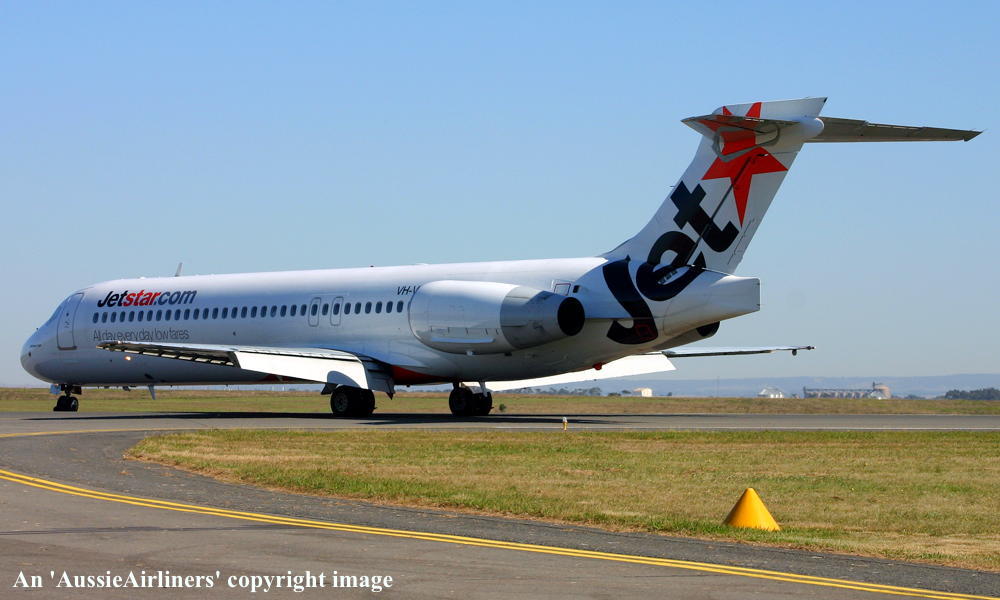 VH-VQG. Jetstar - in the 'white' livery at Melbourne Avalon Airport, March 13, 2005. (P. Vabre Copyright Image 4660-163.) |