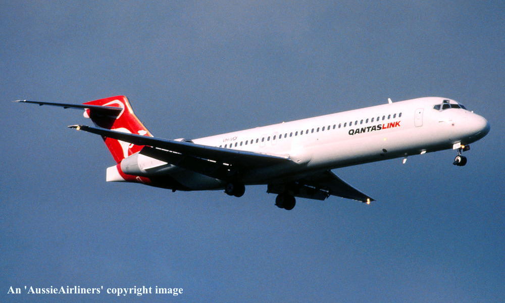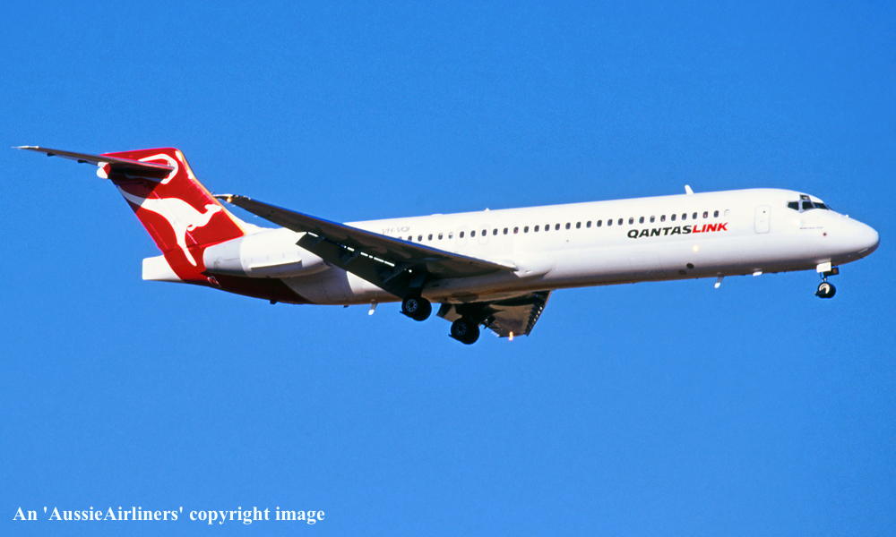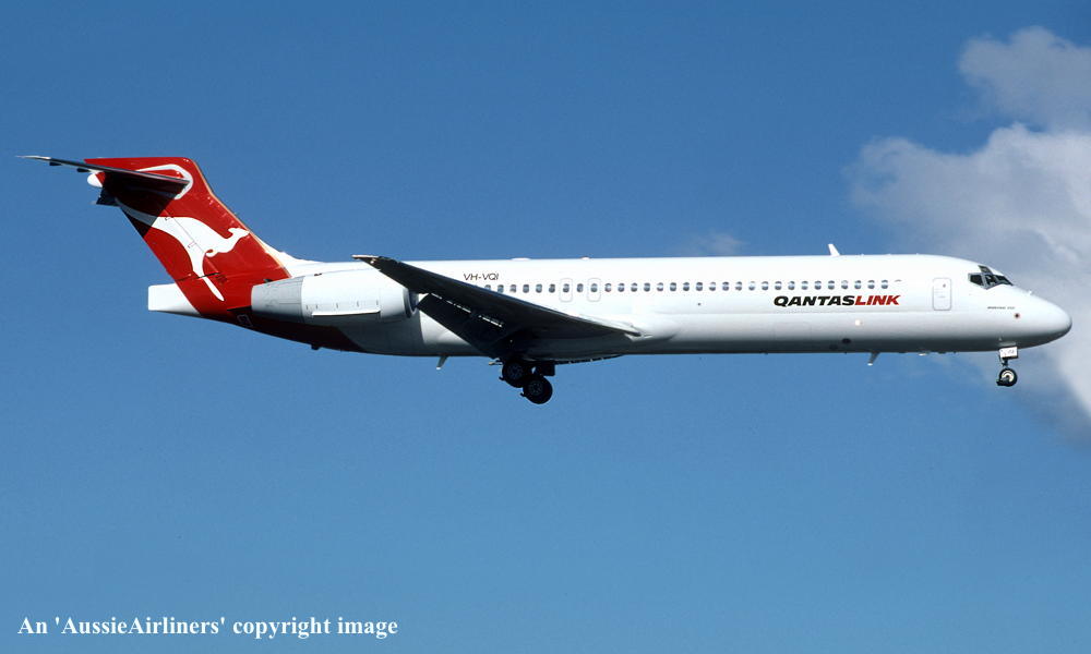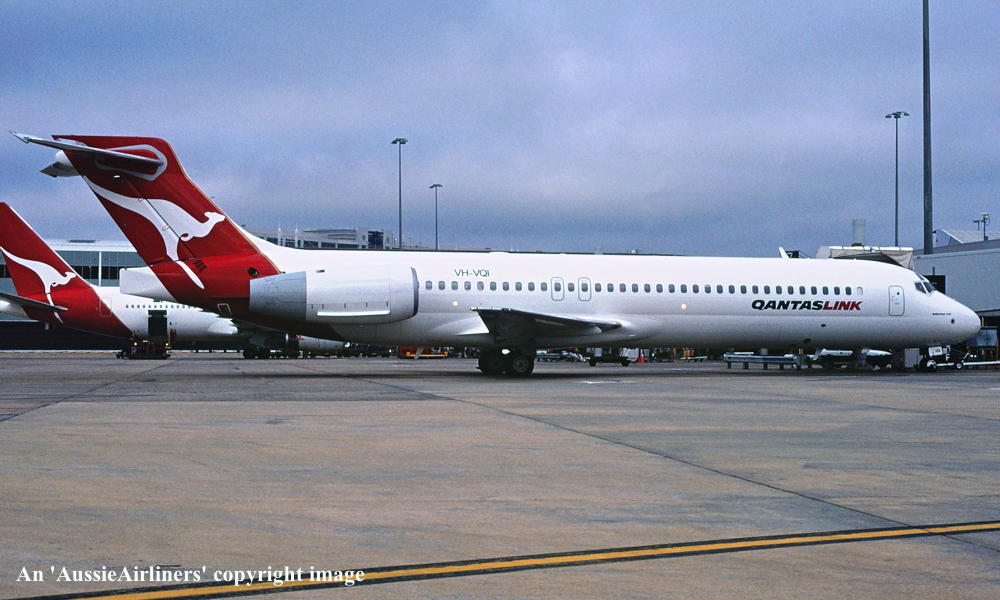 VH-VQI. QantasLink - in the original livery at Melbourne Tullamarine Airport, August 2002. (G. Bennett Copyright Image 4660-160.) |
