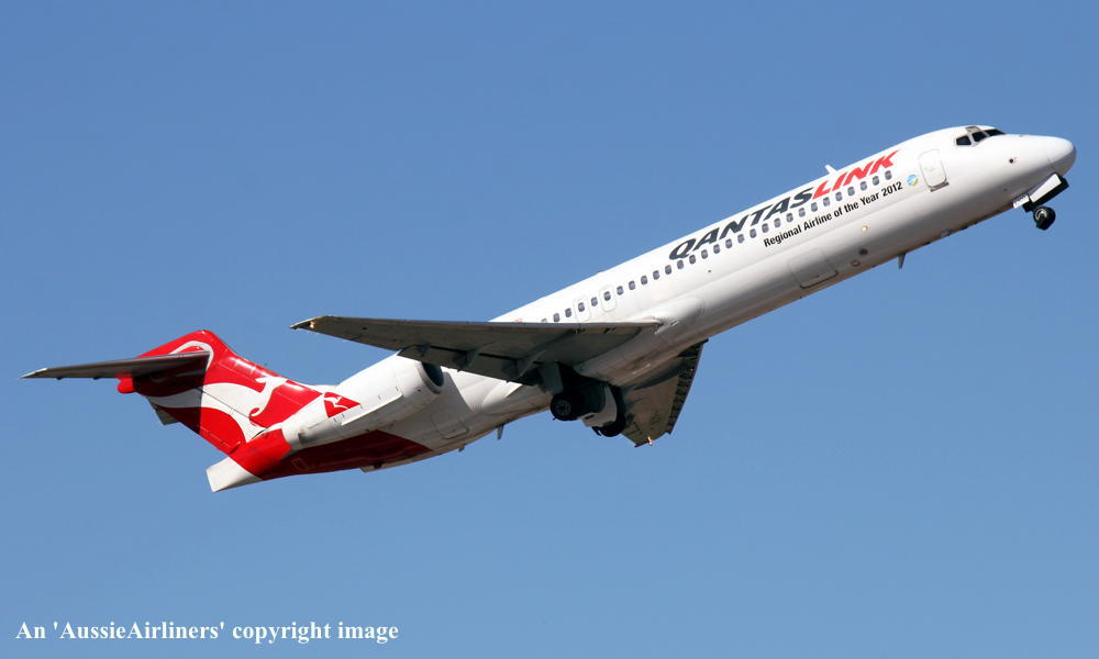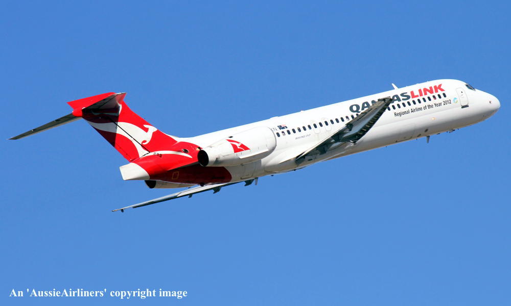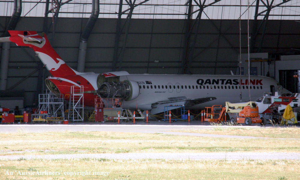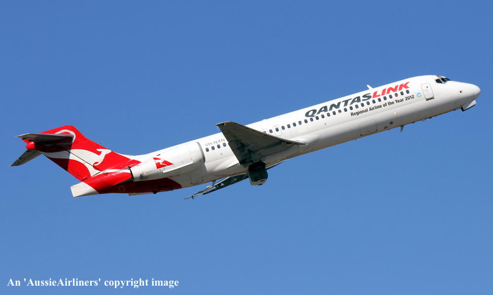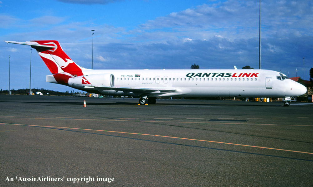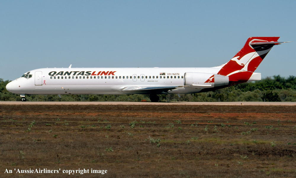 VH-NXN. QantasLink - in the 'New Roo' livery at Alice Springs Airport, August 2008. (T. Arbon Copyright Image 4660-085.) |