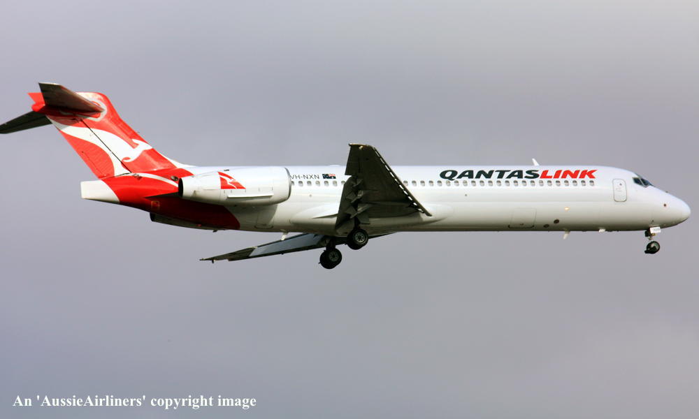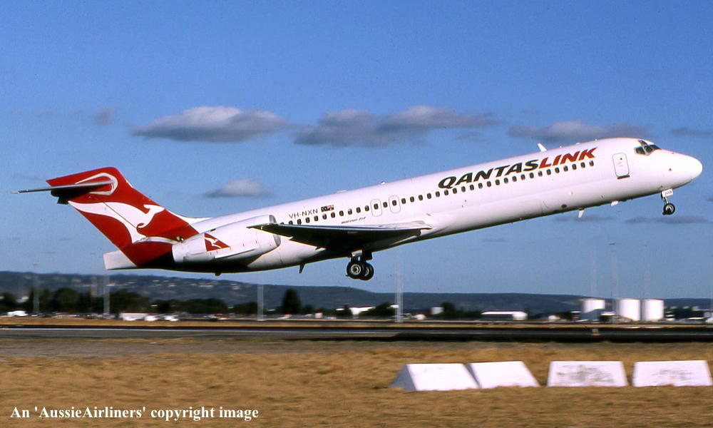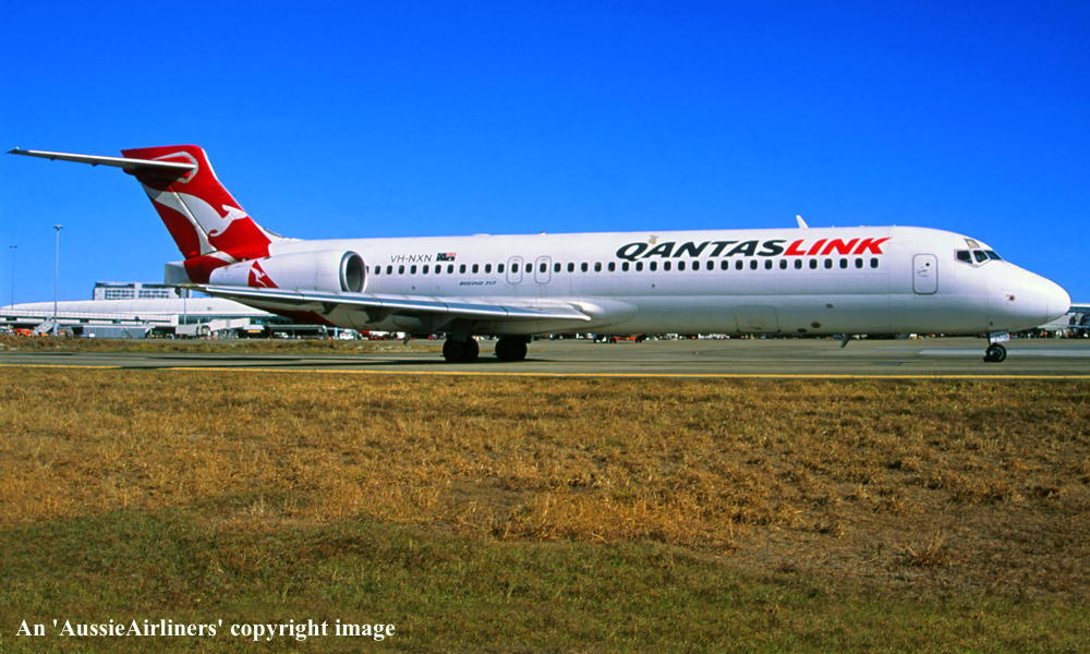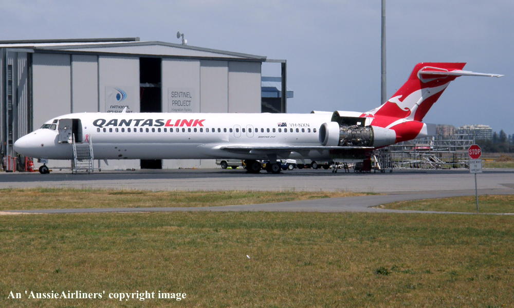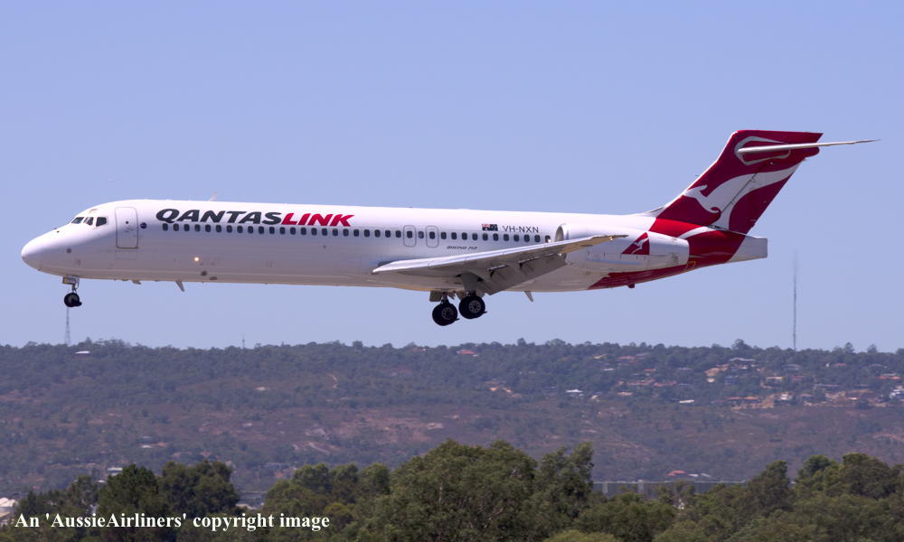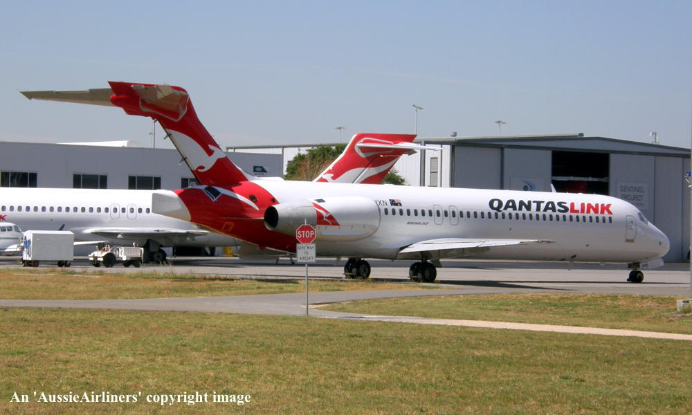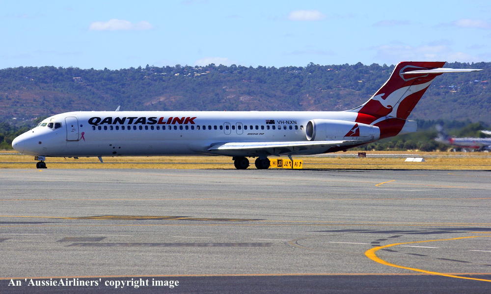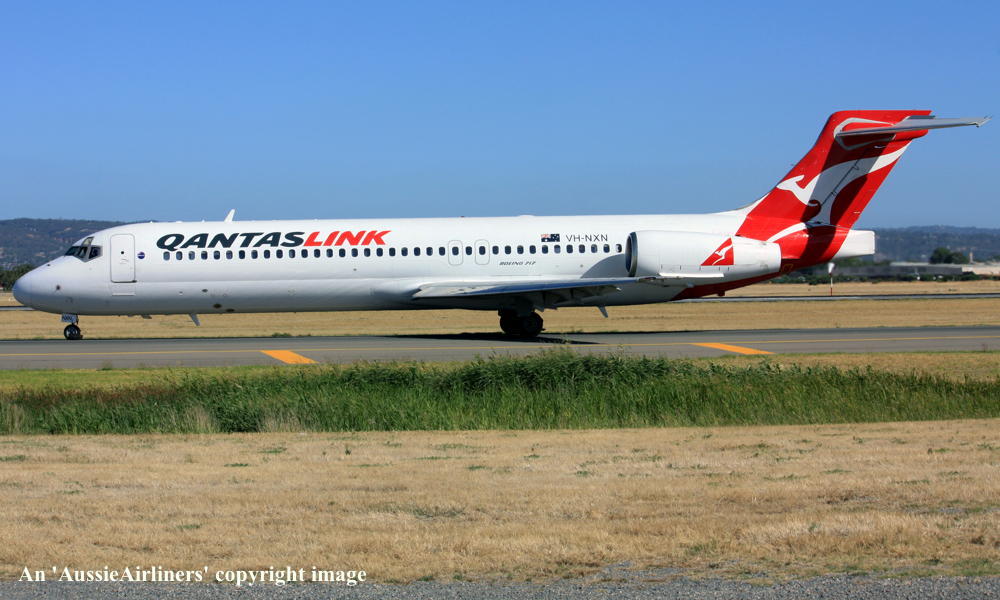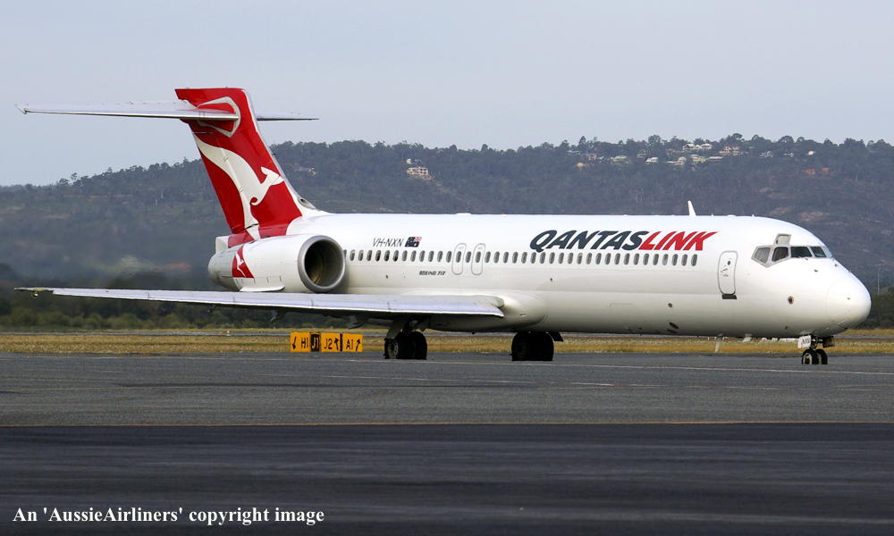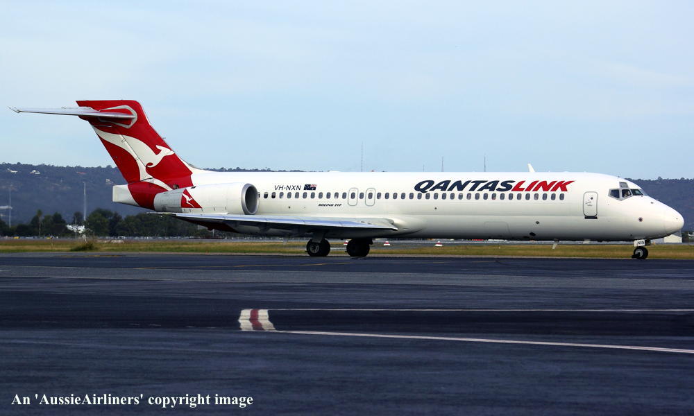 VH-NXN. QantasLink - in the 'New Roo' livery at Perth Airport, September 15, 2008. (R. N. Smith Collection Copyright Image 4660-528.) |