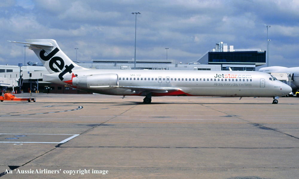 VH-YQI. Jetstar - in the standard livery at Melbourne Tullamarine Airport, February 2006. (G. Bennett Copyright Image 4660-097.) |
