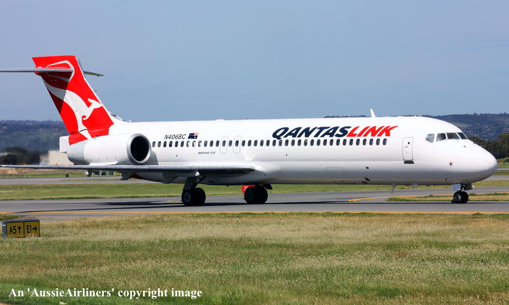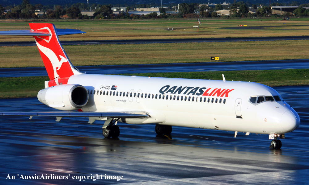 VH-YQS. Boeing 717-2BL. c/n 55178-5128. Was also registered as: N916ME; XA-CLE; N406BC. |