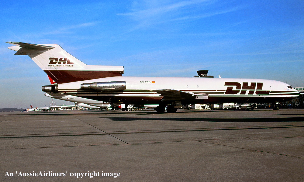 EC-HHU. DHL Worldwide Express - in the standard livery at an unknown airport, February 2000. (R. N. Smith Collection Copyright Image 4610-723.) |