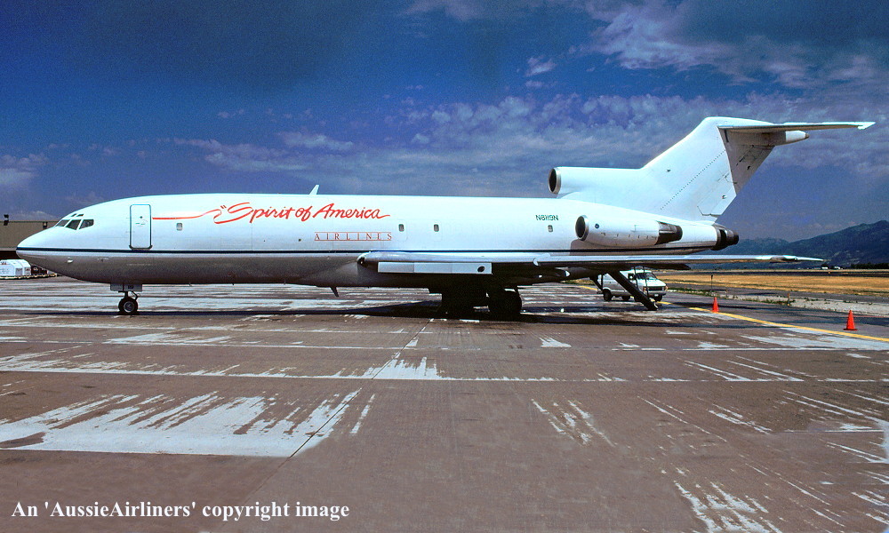 N8119N. Spirit of America Airlines - in the standard livery at an unknown airport, September 1986. (R. N. Smith Collection Copyright Image 4610-824.) |