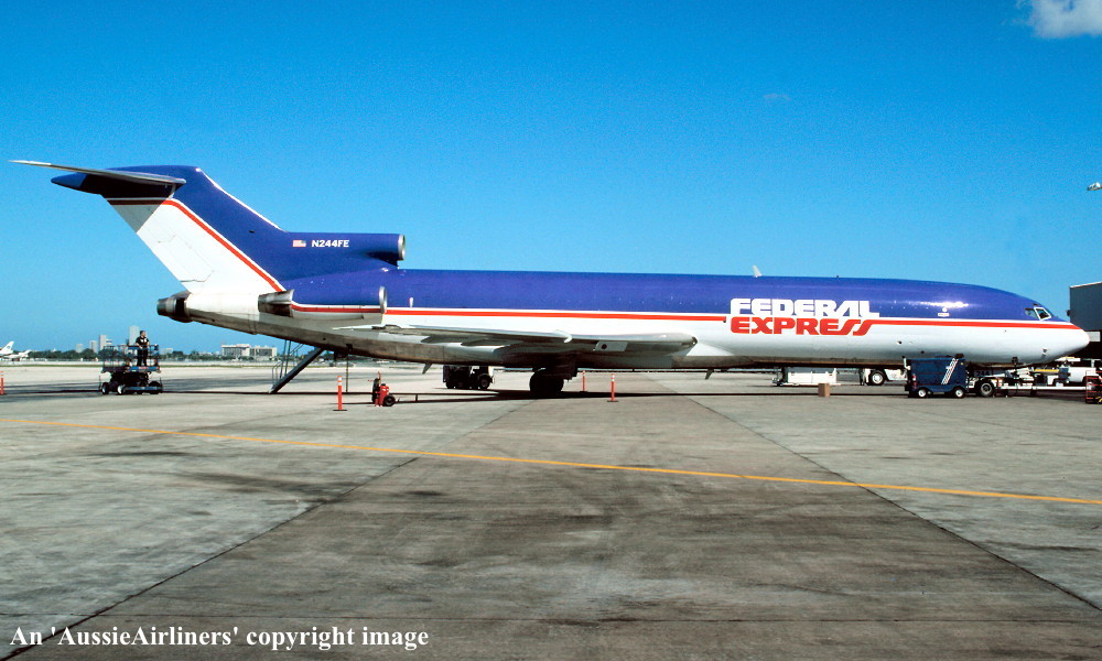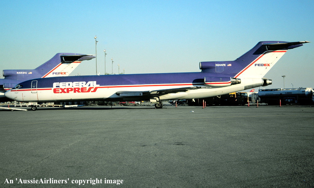 N244FE. Federal Express - in the old livery at an unknown airport, December 1997. (R. N. Smith Collection Copyright Image 4610-200.) |