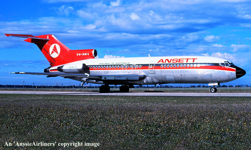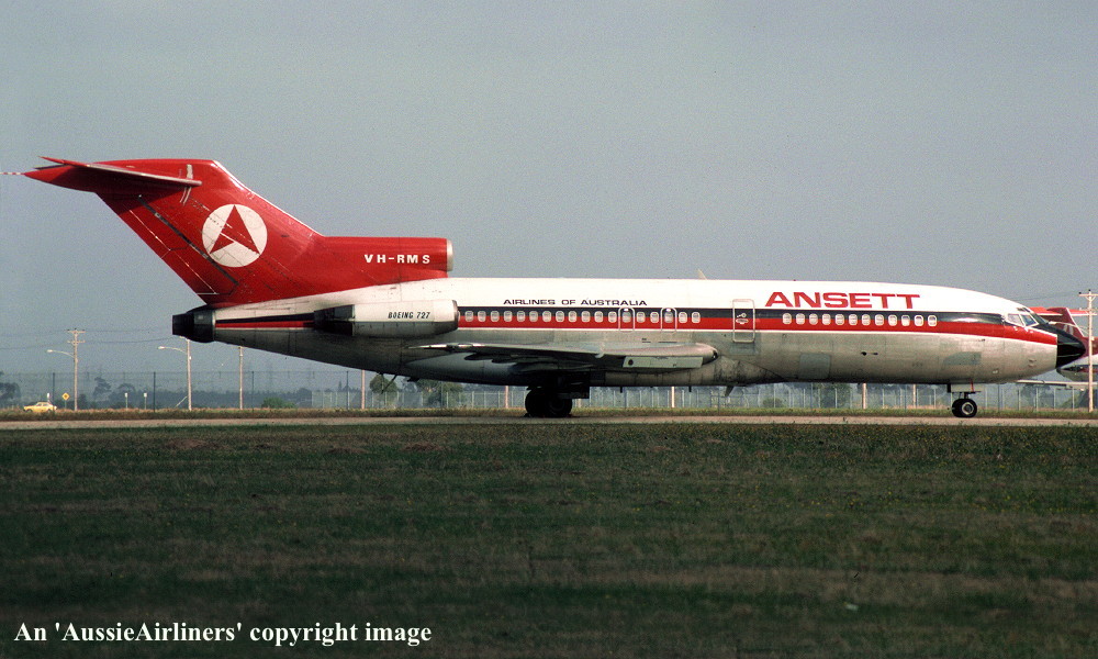 VH-RMS. Ansett Airlines of Australia - in the 'delta' livery at Melbourne Tullamarine Airport, date unknown. (R. N. Smith Collection Copyright Image 4610-074.) |
