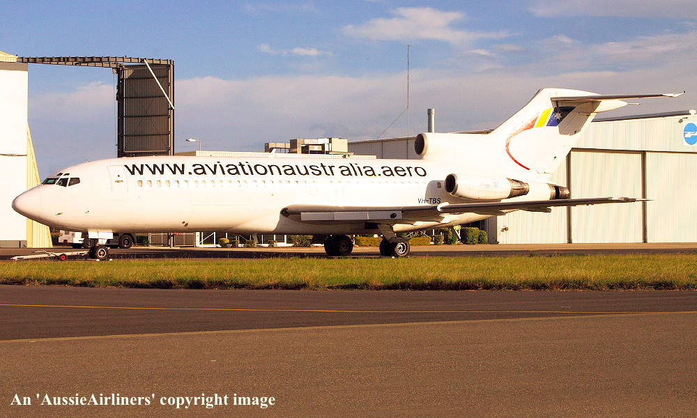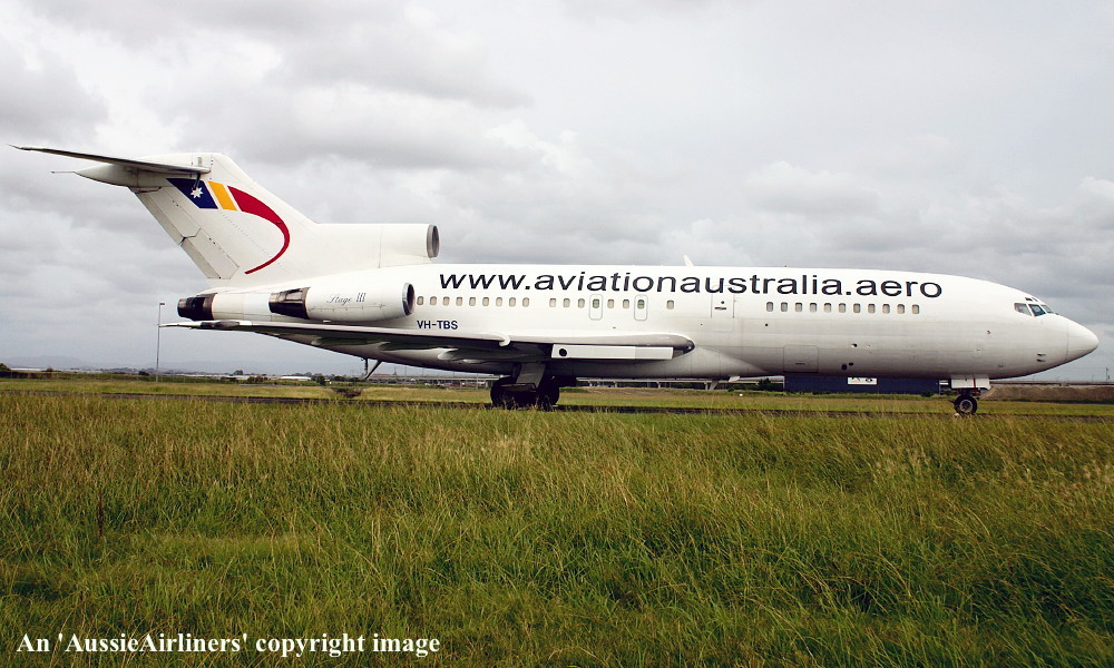 VH-TBS. Aviation Australia - in the standard livery at Brisbane Airport, October 31, 2004. (R. N. Smith Collection Copyright Image 4610-186.) |