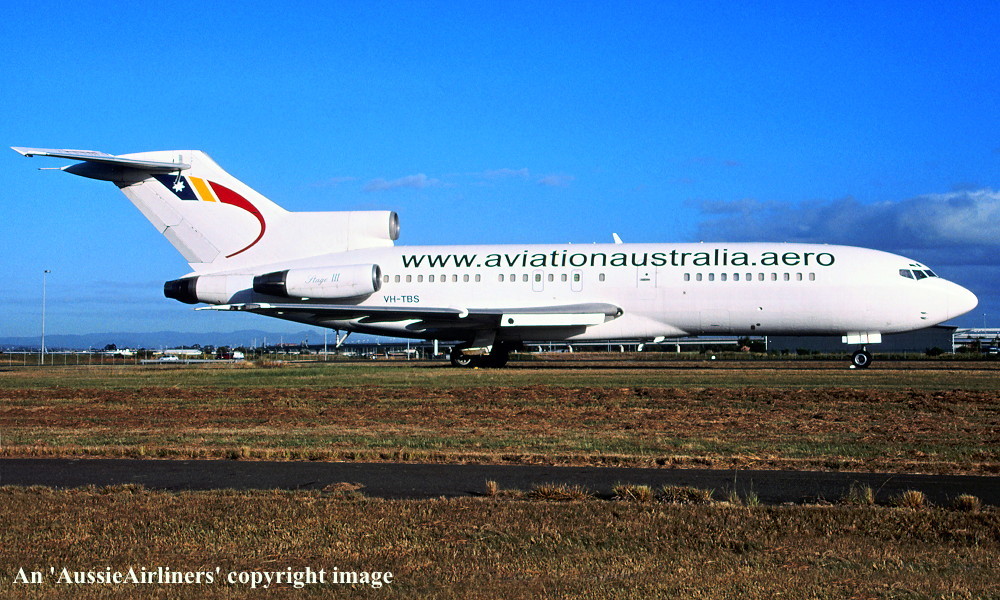 VH-TBS. Aviation Australia - in the standard livery at Brisbane Airport, January 26, 2005. (R. N. Smith Collection Copyright Image 4610-317.) |
