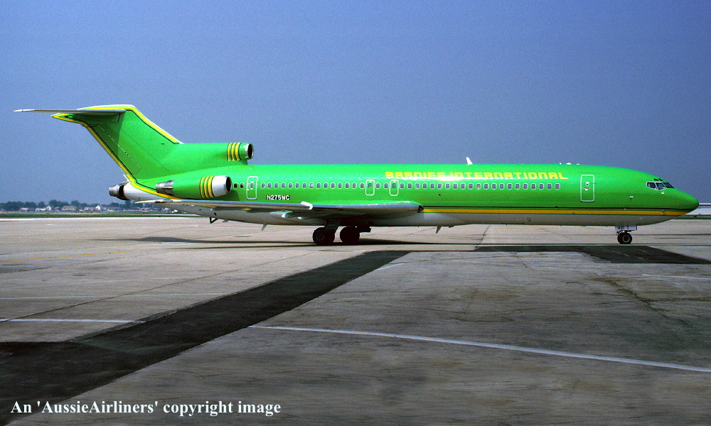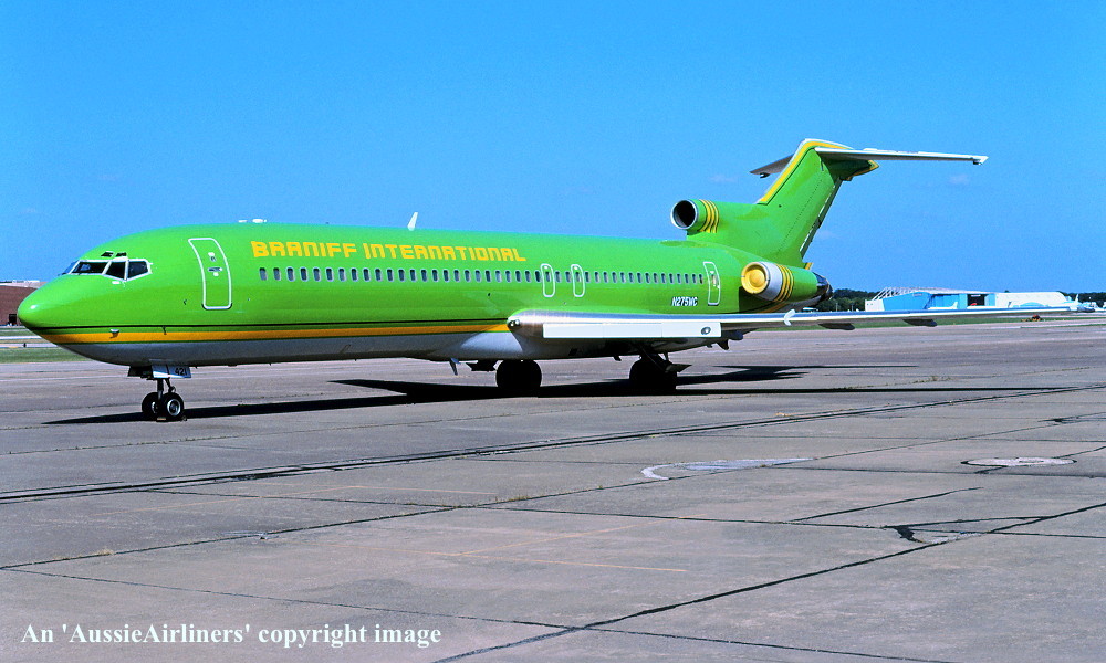 N275WC. Braniff International - in the 'lime green' livery at Orlando Airport, May 1991. (R. N. Smith Collection Copyright Image 4610-180.) |