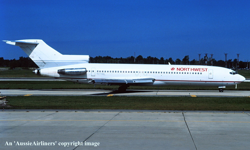 N275WC. Northwest - in the interim livery at an unknown airport, September 1986. (R. N. Smith Collection Copyright Image 4610-965.) |