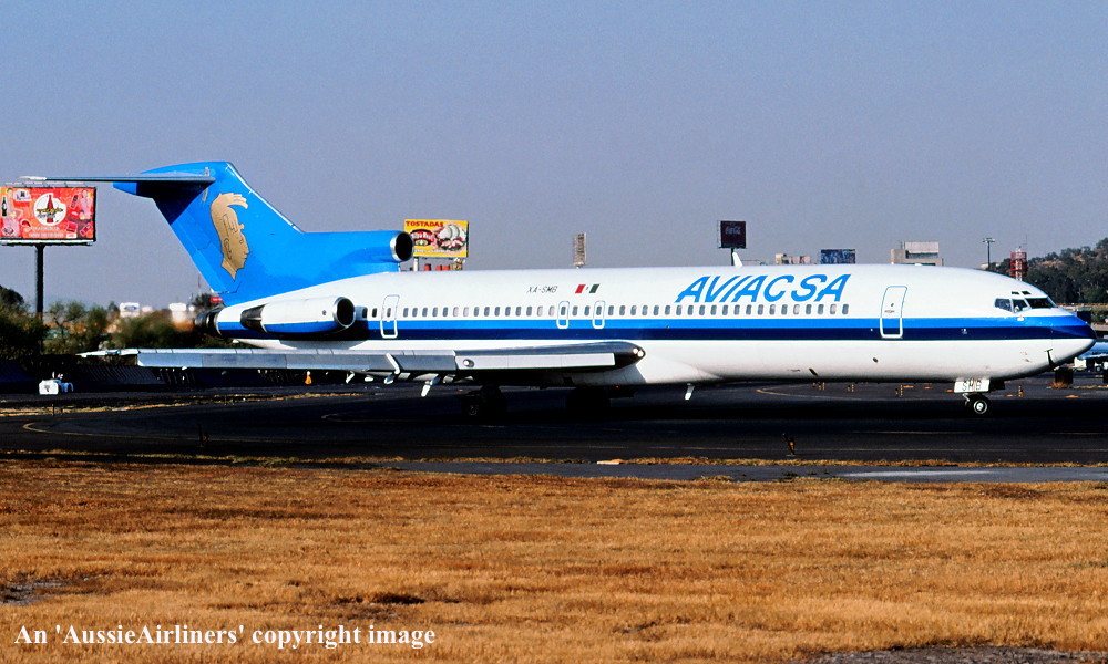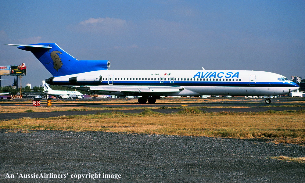 XA-SMB. Aviacsa - in the original livery at Tijuana Airport, November 1999. (R. N. Smith Collection Copyright Image 4610-690.) |