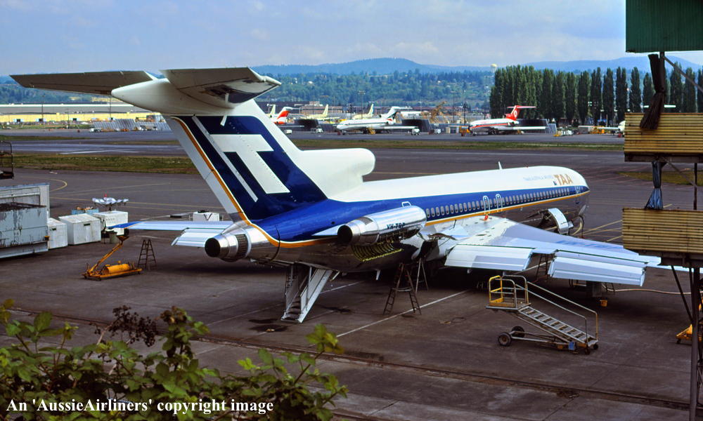VH-TBP. TAA Trans Australia Airlines - 'John Macarthur' in the standard livery at Seattle Boeing Field, May 1979. (R. N. Smith Collection Copyright Image 4610-994.) |
