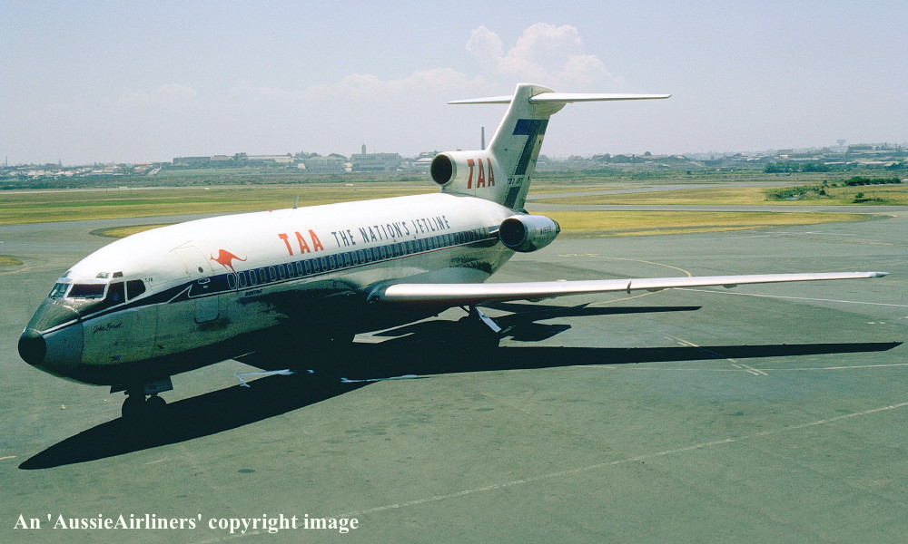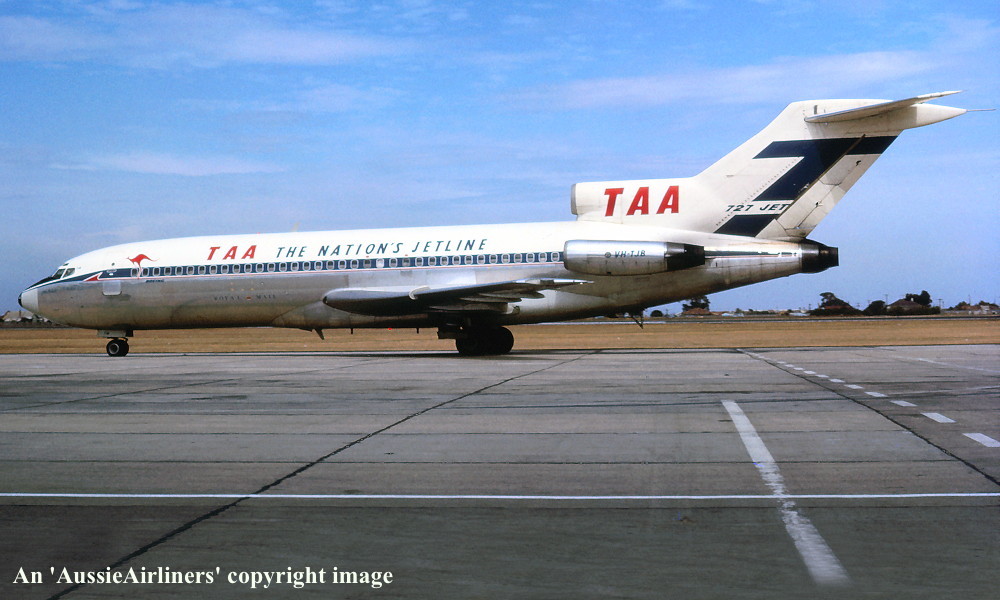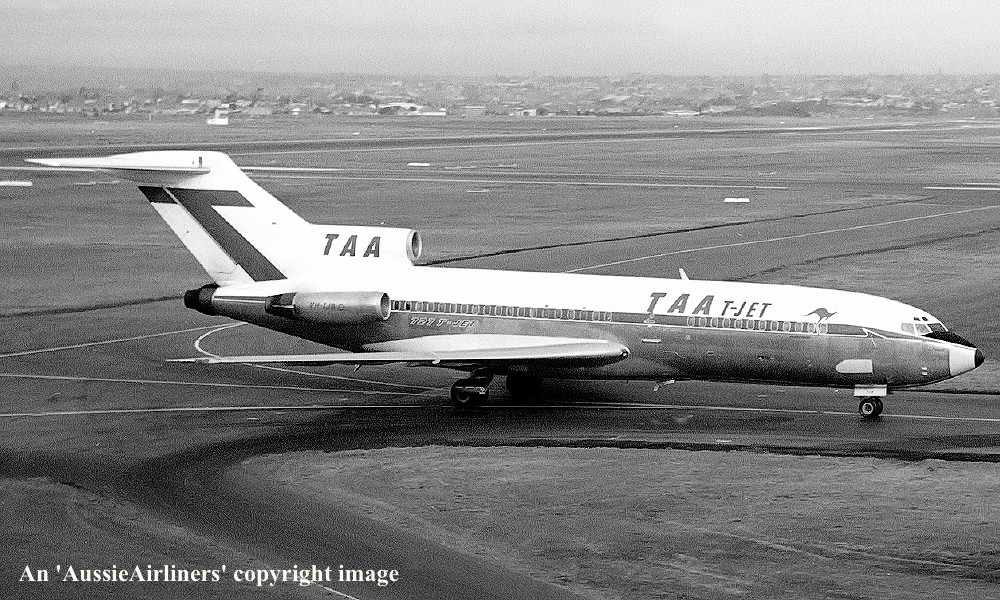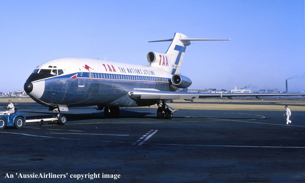 VH-TJB. TAA T-Jet - 'John Forrest' in the standard livery at Sydney Kingsford Smith Airport, May 1968. (R. N. Smith Copyright Image 4610-327.) |