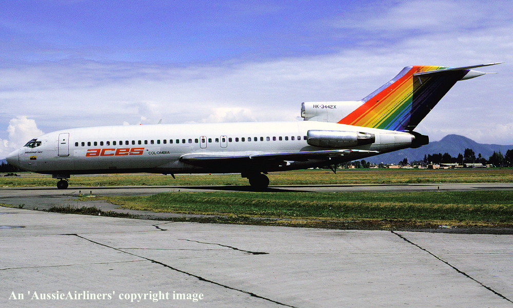 HK-3442X. Aces Colombia - in the basic Trans Brasil livery at Quito Airport, October 1988. (R. N. Smith Collection Copyright Image 4610-227.) |