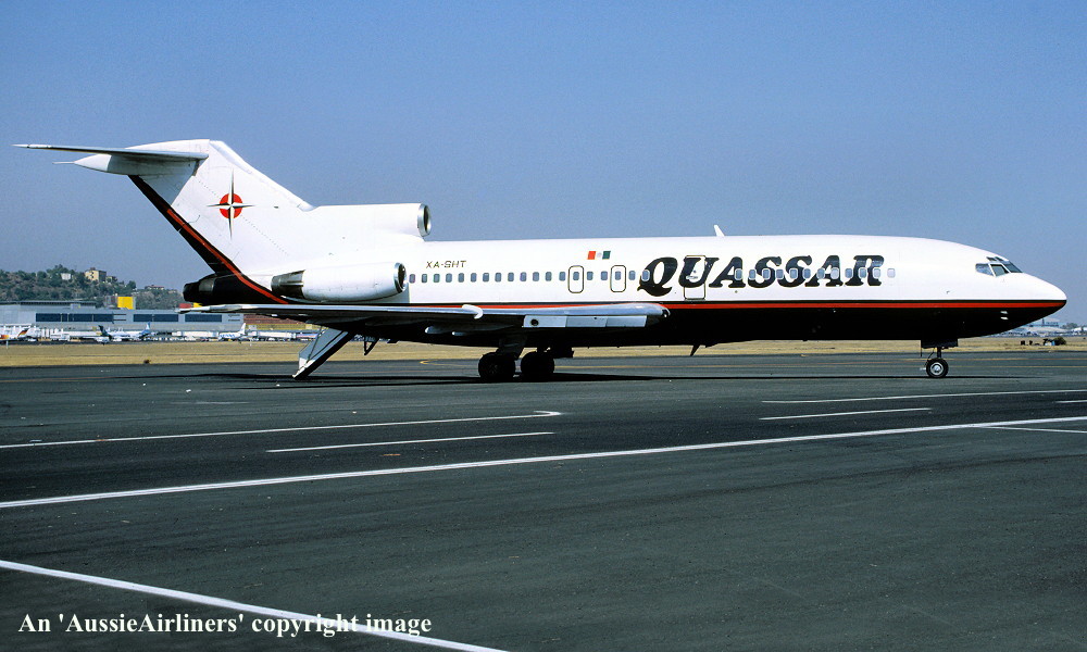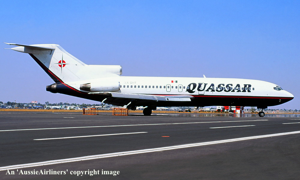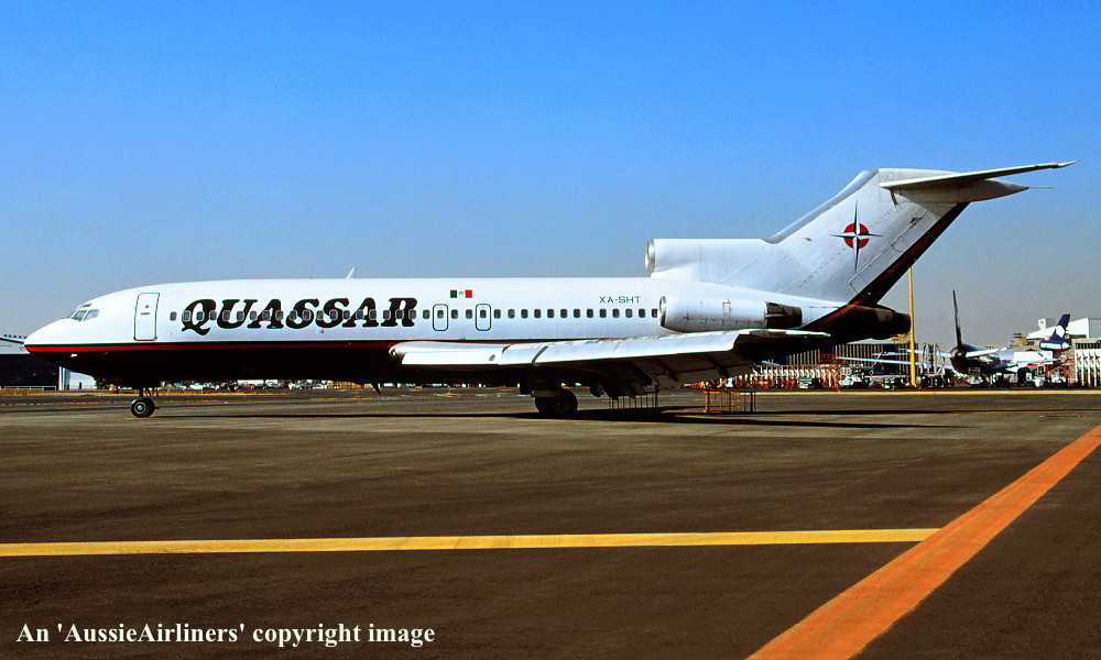 XA-SHT. Quassar - 'El Crucero del Aire' in the standard livery at Mexico City Airport, January 1994. (R. N. Smith Collection Copyright Image 4610-218.) |