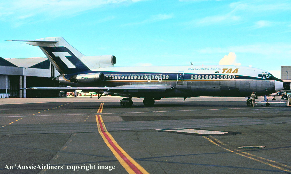 VH-TJB. TAA Trans Australia Airlines - 'John Forrest' in the standard livery at Sydney Kingsford Smith Airport, January 1978. (R. N. Smith Copyright Image 4610-522.) |