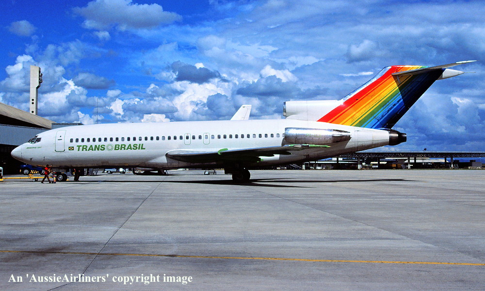 PT-TCF. Trans Brasil - in the standard livery at an unknown airport, July 1987. (R. N. Smith Collection Copyright Image 4610-612.) |