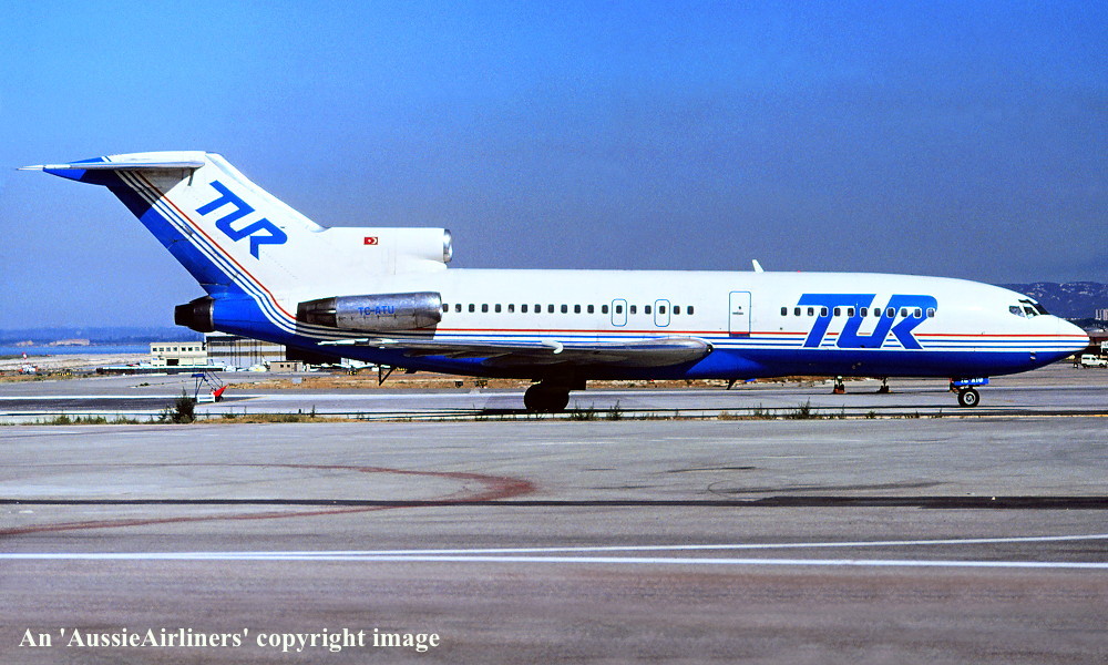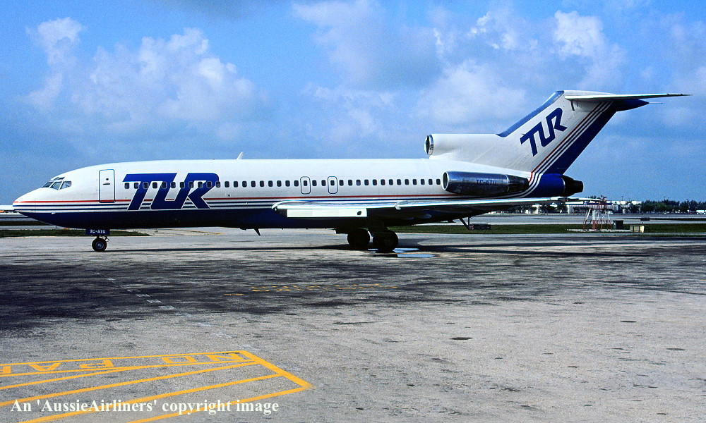 TC-ATU. TUR - in the standard livery at an unknown airport, August 1990. (R. N. Smith Collection Copyright Image 4610-613.) |