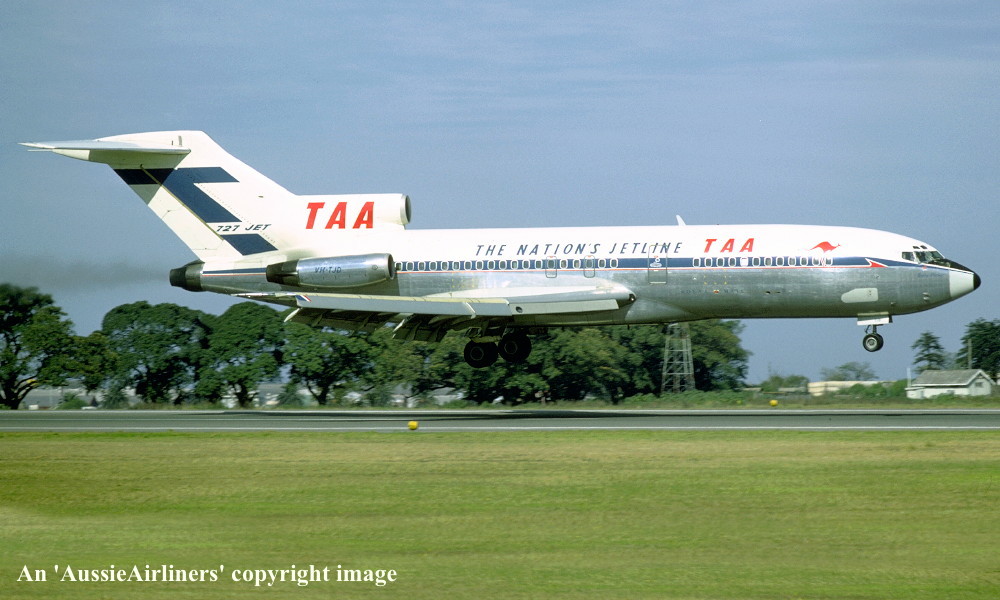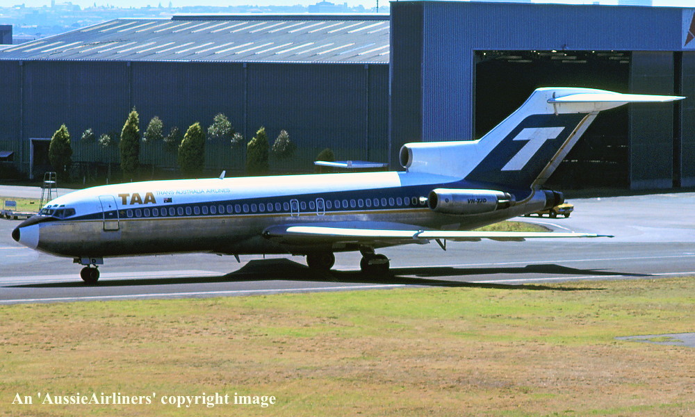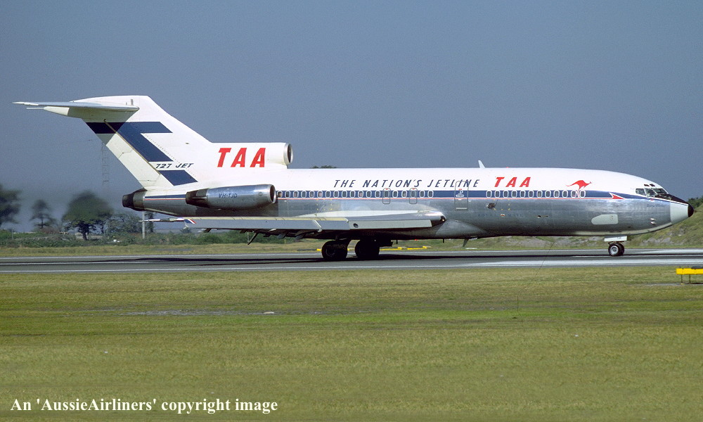 VH-TJD. TAA Trans Australia Airlines - 'Gregory Blaxland' in the standard livery at Sydney Kingsford Smith Airport, September 1977. (R. N. Smith Collection Copyright Image 4611-010.) |