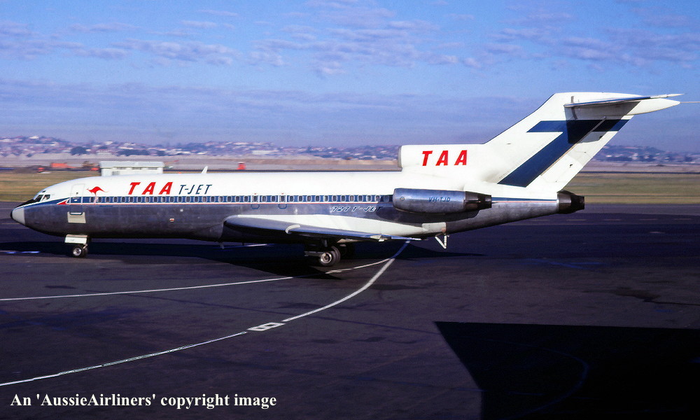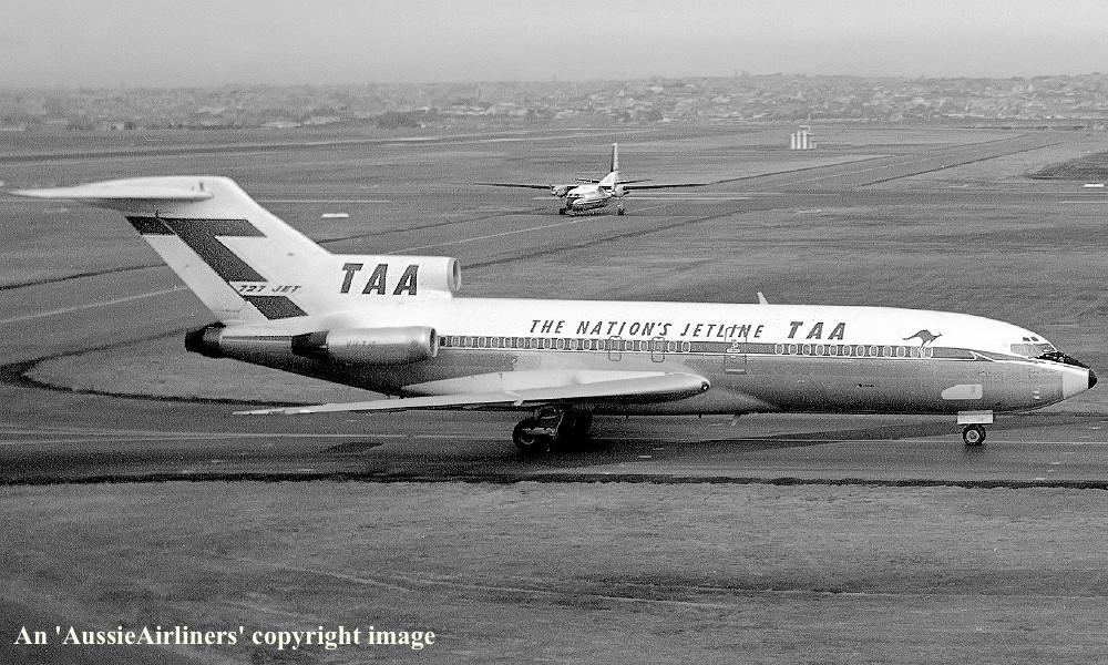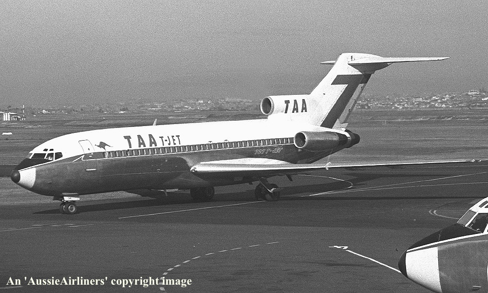 VH-TJD. TAA T-Jet - 'Gregory Blaxland' in the standard livery at Sydney Kingsford Smith Airport, September 24, 1968. (R. N. Smith Copyright Image 4610-328.) |