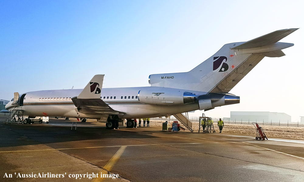 VH-TJD. Boeing 727-76. c/n 19254-298. Was also registered as: N8043B; N10XY; N682G; VP-BAB; M-FAHD; 2-MMTT. |