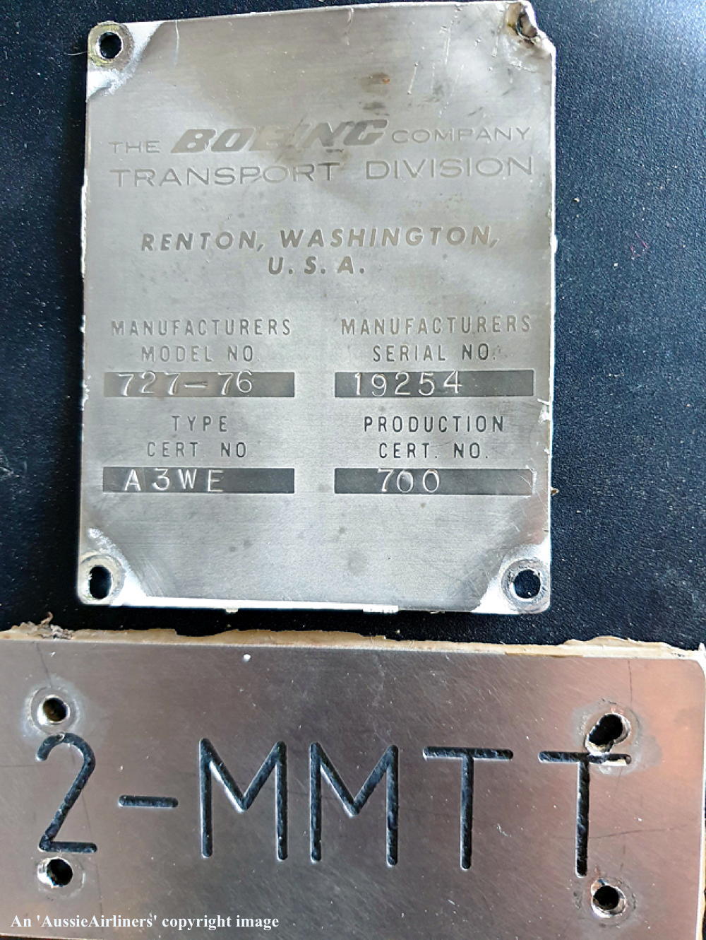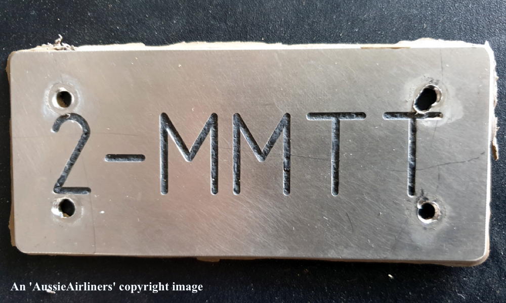 2-MMTT. Prime Air - the Boeing Manufacturer's Plate and the Registration Plate at Kemble Airport, August 14, 2019. (M. Ayling Copyright Image 4610-987.) |