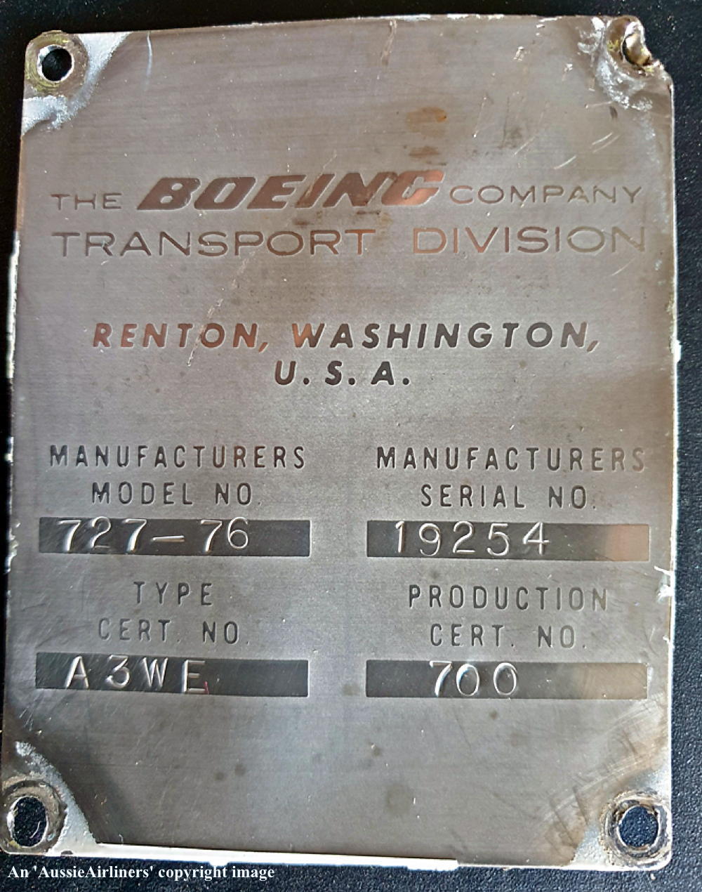 2-MMTT. Prime Air - the Boeing Manufacturer's Plate at Kemble Airport, August 14, 2019. (M. Ayling Copyright Image 4610-988.) |