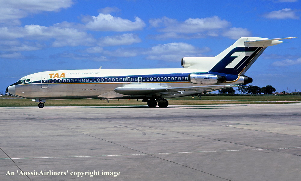 VH-TJF. TAA - in the basic livery at Melbourne Tullamarine Airport, February 1979. (R. N. Smith Collection Copyright Image 4610-106.) |