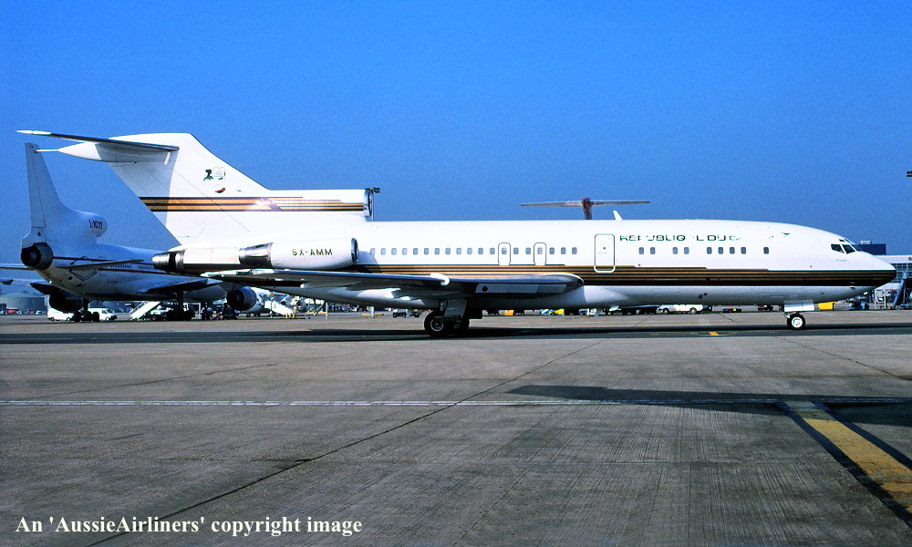 VH-TJF. Boeing 727-76. c/n 20371-822. Was also registered as: VR-BAT; N888VT; VR-BRR; 5X-AMM; VP-CJN. |